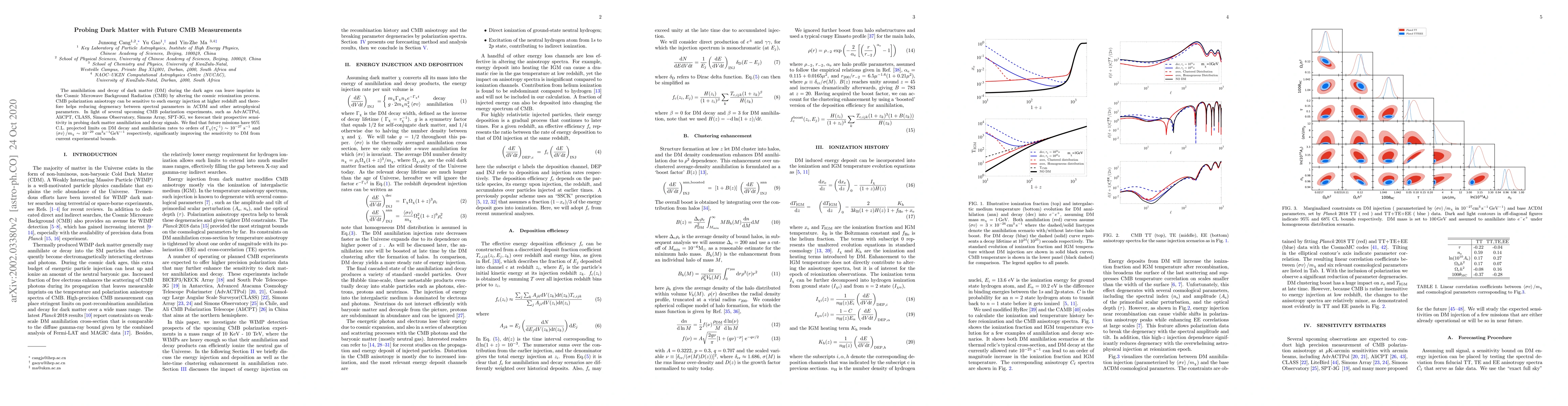Dark Matter (DM) annihilation and decay during the Dark Ages can affect the cosmic ionization history and leave imprints in the Cosmic Microwave Background (CMB) anisotropy spectra. CMB polarization anisotropy can be sensitive to such energy injection at higher redshifts and help reducing degeneracy with primordial spectral parameters in $\Lambda$CDM and astrophysical ionization processes during reionization. In light of a number of upcoming CMB polarization experiments, such as AdvACTPol, AliCPT, CLASS, Simons Observatory, Simons Array, SPT-3G, we estimate their prospective sensitivity in probing dark matter annihilation and decay signals. We find that future missions have 95\% C.L. projected limits on DM decay and annihilation rates to orders of $\Gamma_\chi (\tau_{\chi}^{-1}) \sim 10^{-27}{\rm{s}}^{-1}$ and $\left<\sigma v \right>/m_{\chi} \sim 10^{-29}{\rm{cm^3s^{-1}GeV^{-1}}}$ respectively, significantly improving the sensitivity to DM from current experimental bounds.