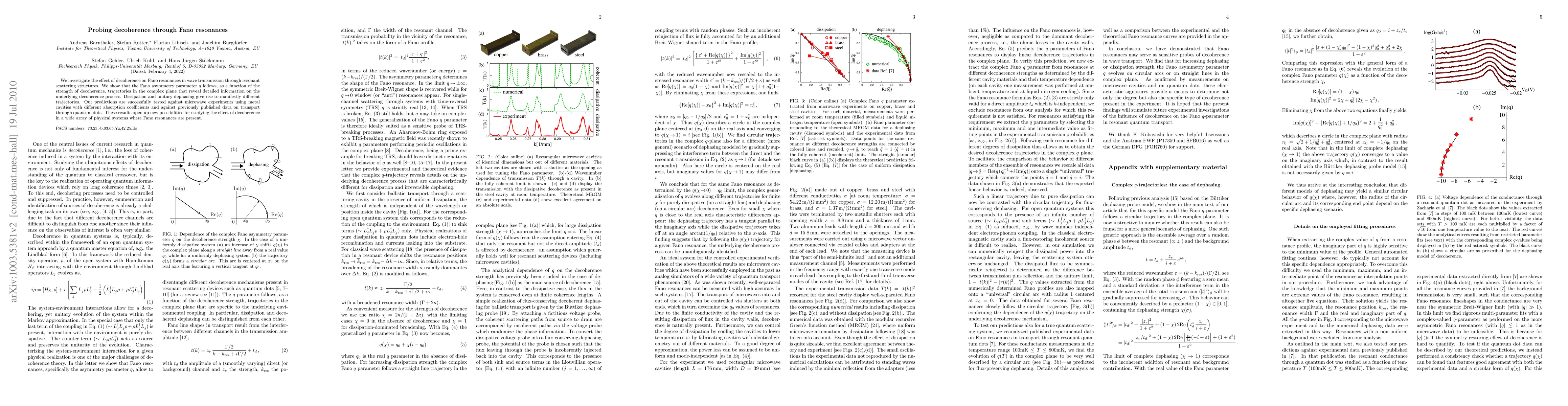 This paper explores how decoherence influences Fano resonances in wave transmission, demonstrating that the Fano asymmetry parameter q traces distinct trajectories in the complex plane depending on decoherence strength. Experimental validation using microwave metal cavities and quantum dots confirms these findings, offering new insights into decoherence effects in systems with Fano resonances.
