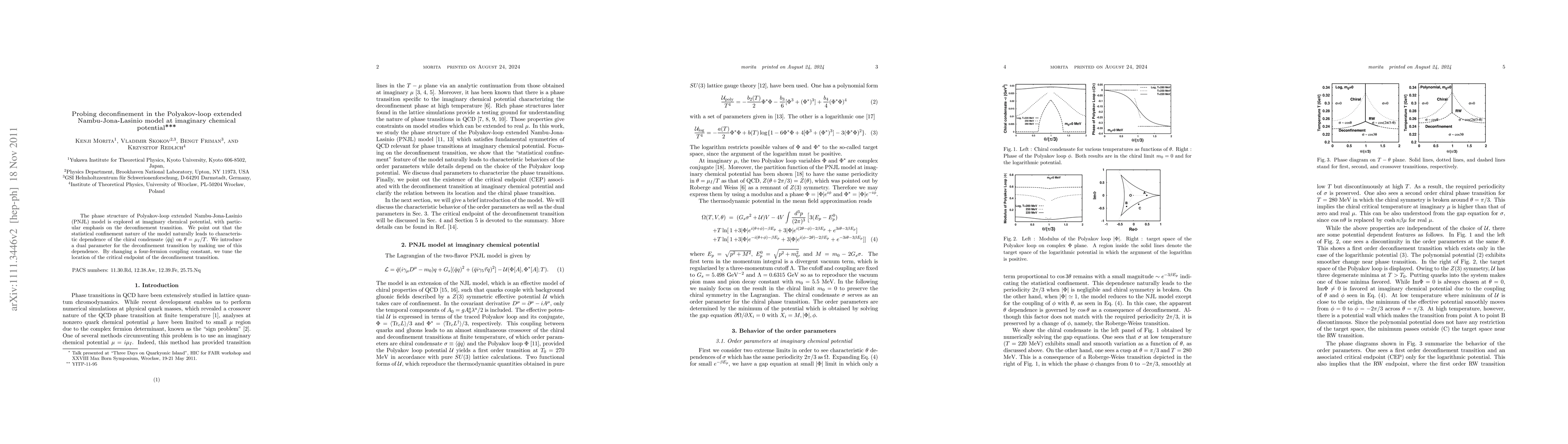 This paper investigates the phase structure of the Polyakov-loop extended Nambu-Jona-Lasinio (PNJL) model at imaginary chemical potential, focusing on the deconfinement transition. It introduces a dual parameter for the deconfinement transition based on the model's dependence on the angle $\theta=\mu_I/T$, and demonstrates how altering the four-fermion coupling constant shifts the critical endpoint of the transition.