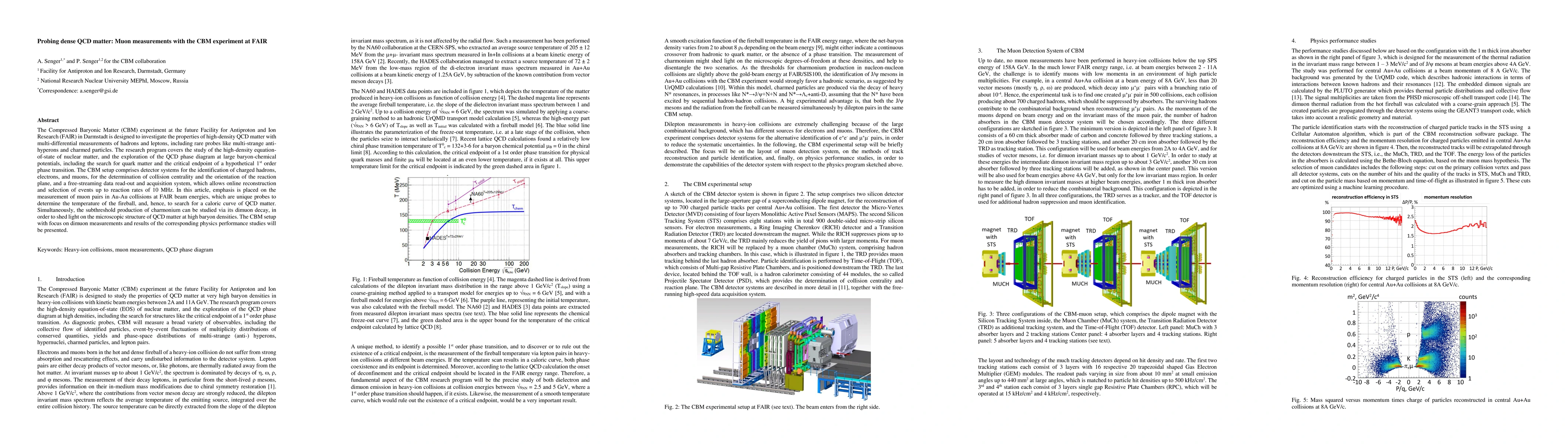 The CBM experiment at FAIR aims to study high-density QCD matter through multi-differential measurements of hadrons and leptons, focusing on muon pairs in Au-Au collisions to determine the temperature of the fireball and explore the QCD phase diagram. The setup includes detectors for charged particles and muons, enabling the investigation of the critical endpoint and potential quark matter.