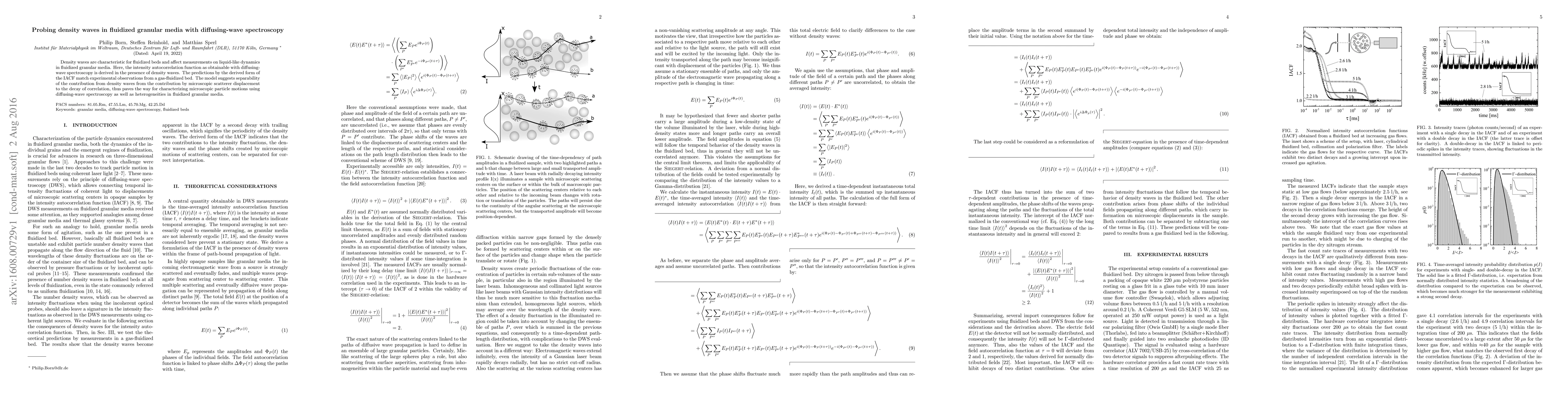 The research utilizes diffusing-wave spectroscopy (DWS) to probe density waves in fluidized granular media, deriving the intensity autocorrelation function (IACF) in the presence of such waves. The model's predictions are validated against experimental observations from a gas-fluidized bed.
