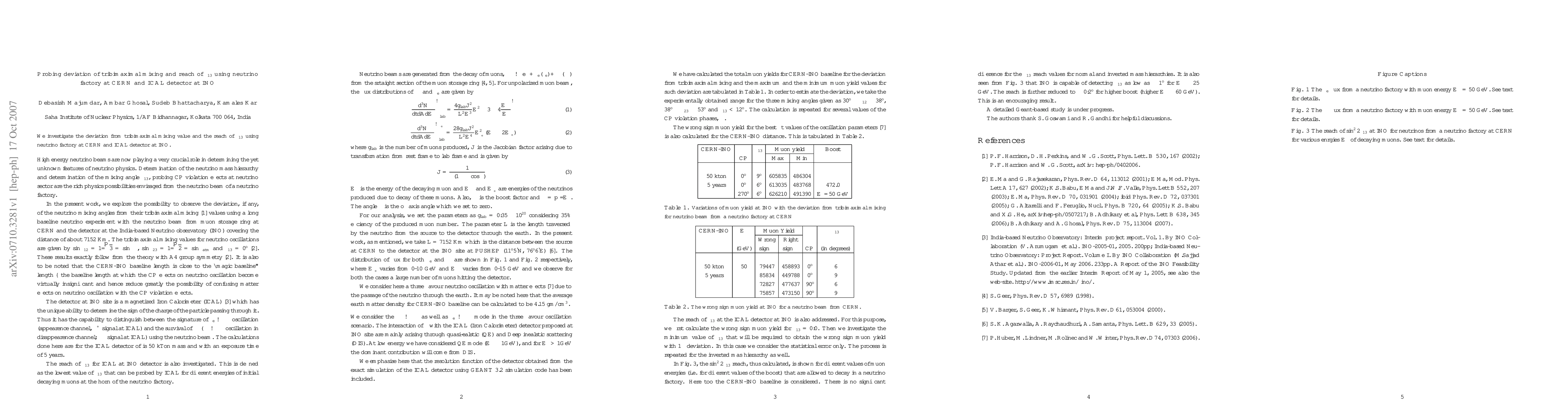 We investigate the deviation from tribimaximal mixing value and the reach of $\theta_{13}$ using neutrino factory at CERN and ICAL detector at INO.