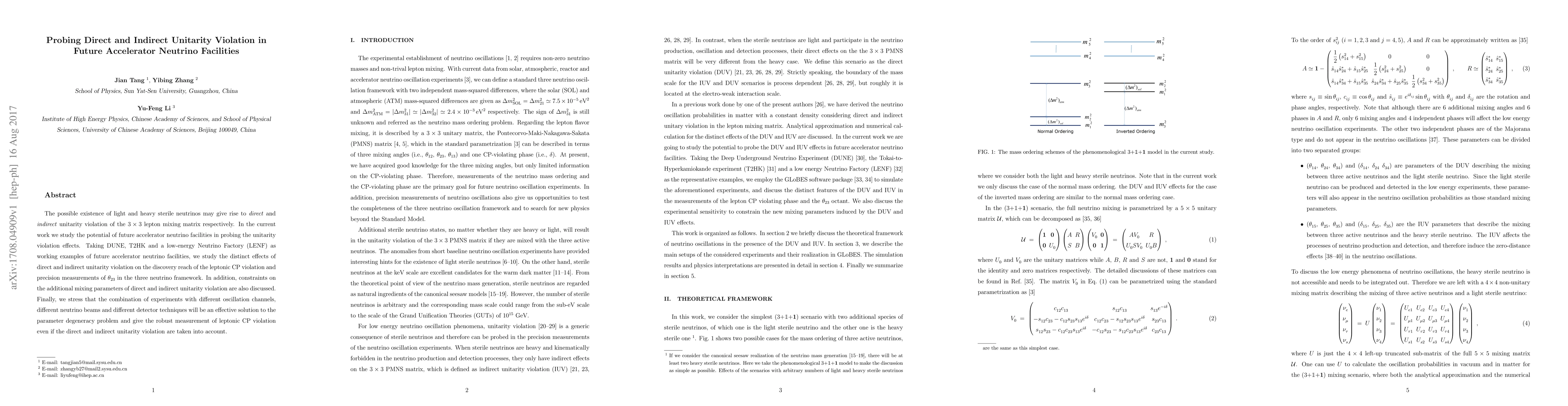 This paper explores how future accelerator neutrino facilities like DUNE, T2HK, and LENF can detect direct and indirect unitarity violations in the lepton mixing matrix due to sterile neutrinos. It emphasizes the importance of combining different experiments to robustly measure leptonic CP violation and precision parameters despite potential unitarity violations.