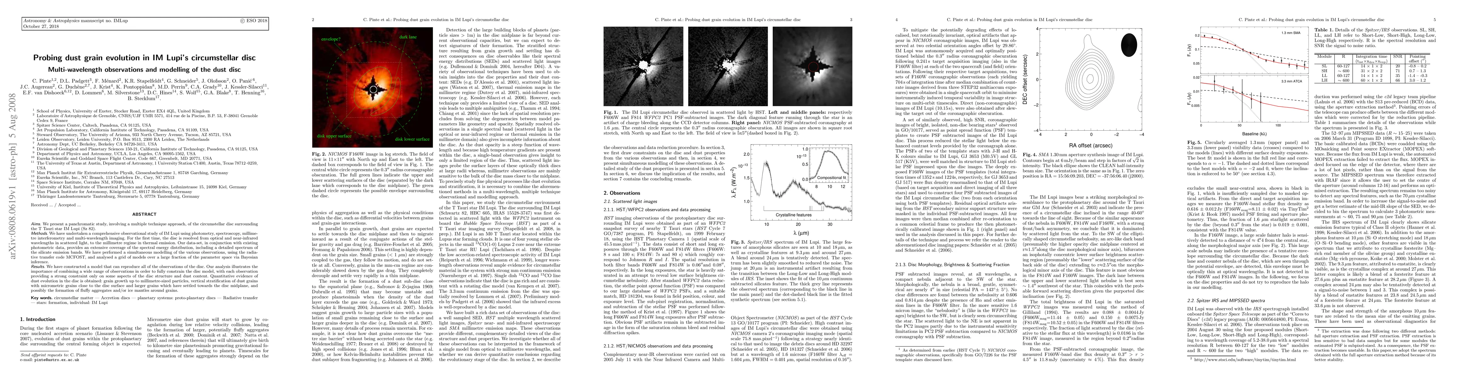 We present a panchromatic study, involving a multiple technique approach, of the circumstellar disc surrounding the T Tauri star IM Lupi (Sz 82). We have undertaken a comprehensive observational study of IM Lupi using photometry, spectroscopy, millimetre interferometry and multi-wavelength imaging. For the first time, the disc is resolved from optical and near-infrared wavelengths in scattered light, to the millimetre regime in thermal emission. Our data-set, in conjunction with existing photometric data, provides an extensive coverage of the spectral energy distribution, including a detailed spectrum of the silicate emission bands. We have performed a simultaneous modelling of the various observations, using the radiative transfer code MCFOST, and analysed a grid of models over a large fraction of the parameter space via Bayesian inference. We have constructed a model that can reproduce all of the observations of the disc. Our analysis illustrates the importance of combining a wide range of observations in order to fully constrain the disc model, with each observation providing a strong constraint only on some aspects of the disc structure and dust content. Quantitative evidence of dust evolution in the disc is obtained: grain growth up to millimetre-sized particles, vertical stratification of dust grains with micrometric grains close to the disc surface and larger grains which have settled towards the disc midplane, and possibly the formation of fluffy aggregates and/or ice mantles around grains.