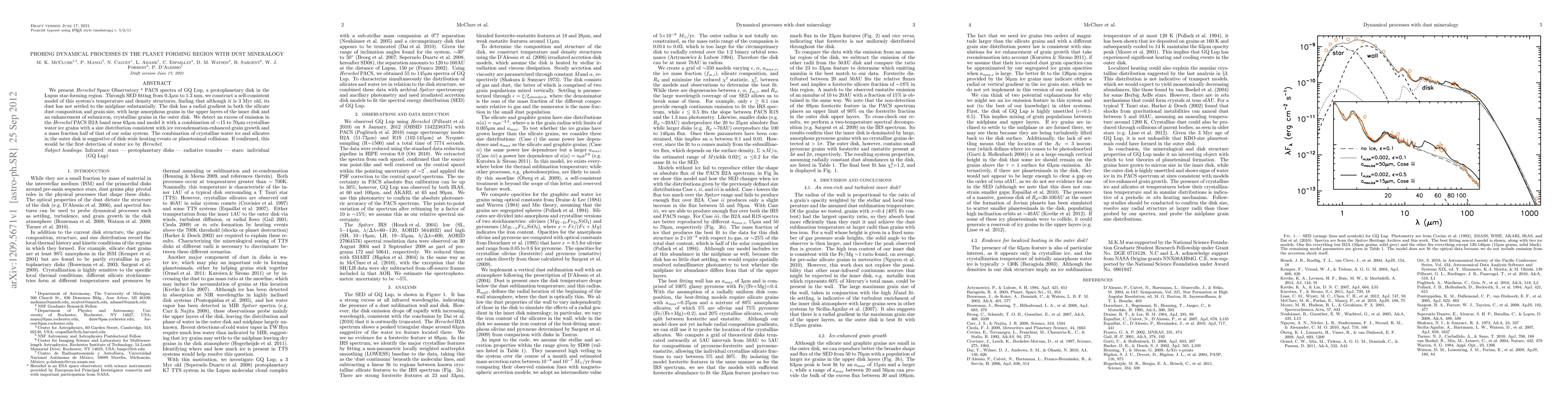 We present Herschel Space Observatory PACS spectra of GQ Lup, a protoplanetary disk in the Lupus star-forming region. Through SED fitting from 0.3{\mu}m to 1.3mm, we construct a self-consistent model of this system's temperature and density structures, finding that although it is 3 Myr old, its dust has not settled to the midplane substantially. The disk has a radial gradient in both the silicate dust composition and grain size, with large amorphous grains in the upper layers of the inner disk and an enhancement of submicron, crystalline grains in the outer disk. We detect an excess of emission in the Herschel PACS B2A band near 63{\mu}m and model it with a combination of {\sim}15 to 70{\mu}m crystalline water ice grains with a size distribution consistent with ice recondensation-enhanced grain growth and a mass fraction half of that of our solar system. The combination of crystalline water ice and silicates in the outer disk is suggestive of disk-wide heating events or planetesimal collisions. If confirmed, this would be the first detection of water ice by Herschel.