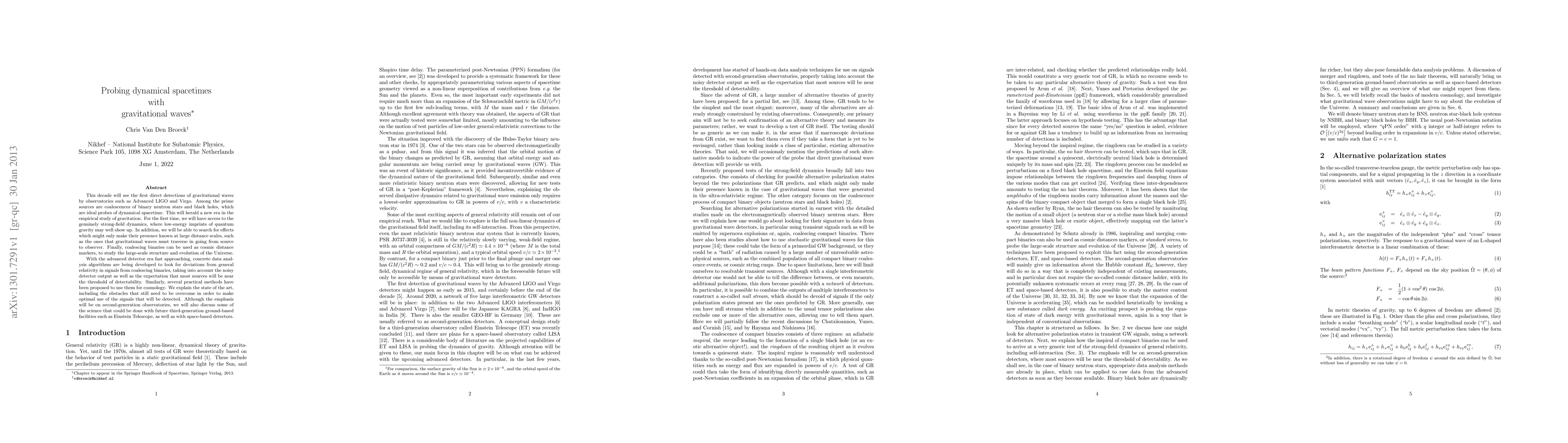 This decade will see the first direct detections of gravitational waves by observatories such as Advanced LIGO and Virgo. Among the prime sources are coalescences of binary neutron stars and black holes, which are ideal probes of dynamical spacetime. This will herald a new era in the empirical study of gravitation. For the first time, we will have access to the genuinely strong-field dynamics, where low-energy imprints of quantum gravity may well show up. In addition, we will be able to search for effects which might only make their presence known at large distance scales, such as the ones that gravitational waves must traverse in going from source to observer. Finally, coalescing binaries can be used as cosmic distance markers, to study the large-scale structure and evolution of the Universe. With the advanced detector era fast approaching, concrete data analysis algorithms are being developed to look for deviations from general relativity in signals from coalescing binaries, taking into account the noisy detector output as well as the expectation that most sources will be near the threshold of detectability. Similarly, several practical methods have been proposed to use them for cosmology. We explain the state of the art, including the obstacles that still need to be overcome in order to make optimal use of the signals that will be detected. Although the emphasis will be on second-generation observatories, we will also discuss some of the science that could be done with future third-generation ground-based facilities such as Einstein Telescope, as well as with space-based detectors.