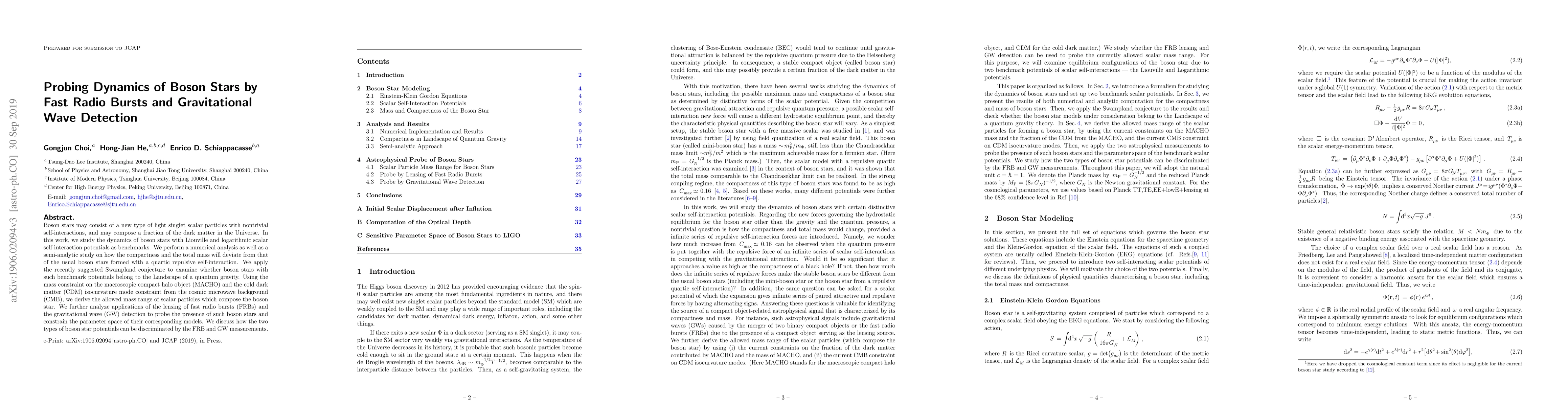 Boson stars may consist of a new type of light singlet scalar particles with nontrivial self-interactions, and may compose a fraction of the dark matter in the Universe. In this work, we study the dynamics of boson stars with Liouville and logarithmic scalar self-interaction potentials as benchmarks. We perform a numerical analysis as well as a semi-analytic study on how the compactness and the total mass will deviate from that of the usual boson stars formed with a quartic repulsive self-interaction. We apply the recently suggested Swampland conjecture to examine whether boson stars with such benchmark potentials belong to the Landscape of a quantum gravity. Using the mass constraint on the macroscopic compact halo object (MACHO) and the cold dark matter (CDM) isocurvature mode constraint from the cosmic microwave background (CMB), we derive the allowed mass range of scalar particles which compose the boson star. We further analyze applications of the lensing of fast radio bursts (FRBs) and the gravitational wave (GW) detection to probe the presence of such boson stars and constrain the parameter space of their corresponding models. We discuss how the two types of boson star potentials can be discriminated by the FRB and GW measurements.