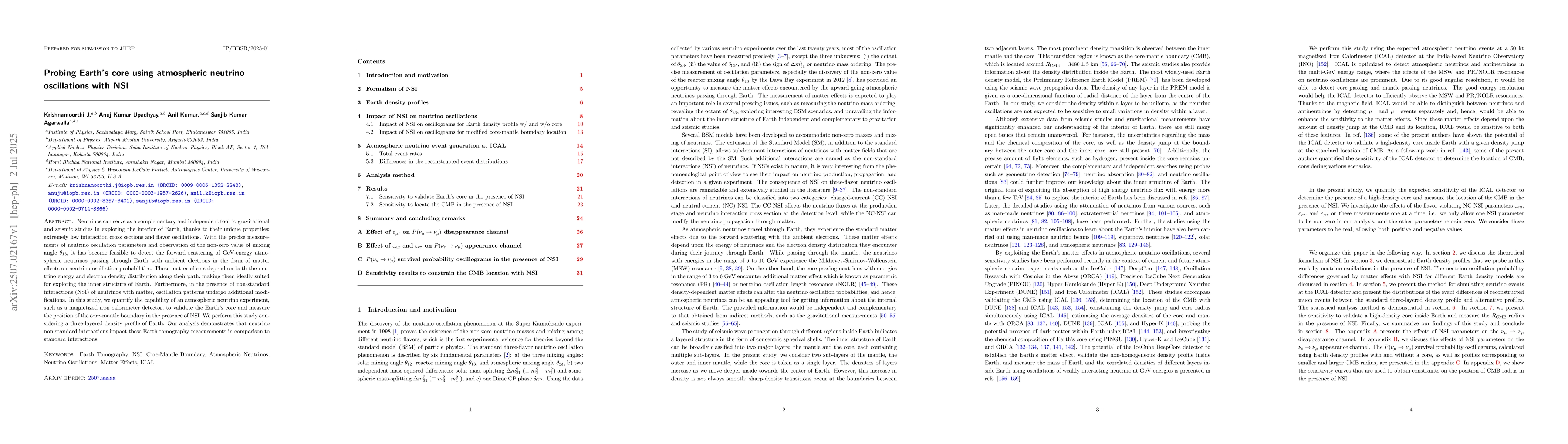 Neutrinos can serve as a complementary and independent tool to gravitational and seismic studies in exploring the interior of Earth, thanks to their unique properties: extremely low interaction cross sections and flavor oscillations. With the precise measurements of neutrino oscillation parameters and observation of the non-zero value of mixing angle $\theta_{13}$, it has become feasible to detect the forward scattering of GeV-energy atmospheric neutrinos passing through Earth with ambient electrons in the form of matter effects on neutrino oscillation probabilities. These matter effects depend on both the neutrino energy and electron density distribution along their path, making them ideally suited for exploring the inner structure of Earth. Furthermore, in the presence of non-standard interactions (NSI) of neutrinos with matter, oscillation patterns undergo additional modifications. In this study, we quantify the capability of an atmospheric neutrino experiment, such as a magnetized iron calorimeter detector, to validate the Earth's core and measure the position of the core-mantle boundary in the presence of NSI. We perform this study considering a three-layered density profile of Earth. Our analysis demonstrates that neutrino non-standard interactions impact these Earth tomography measurements in comparison to standard interactions.