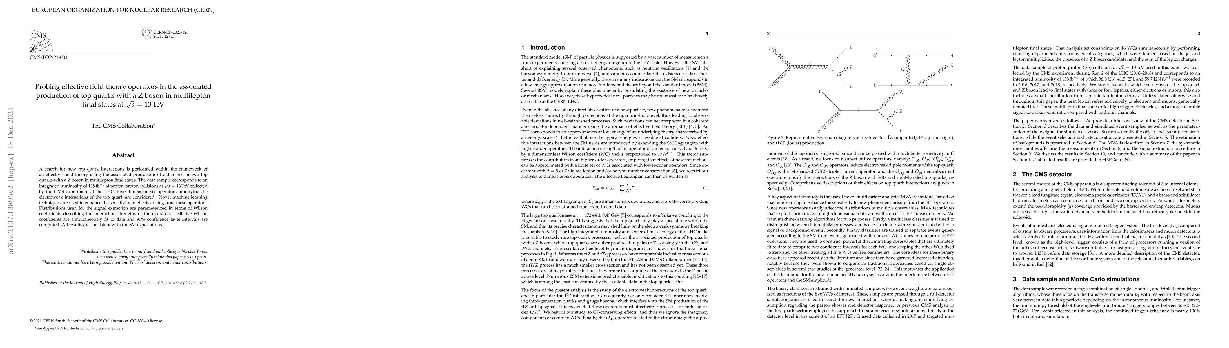 Researchers searched for new top quark interactions using proton-proton collisions at 13 TeV, finding no evidence of deviations from Standard Model expectations. Machine-learning techniques were used to enhance sensitivity to five dimension-six operators modifying electroweak interactions.