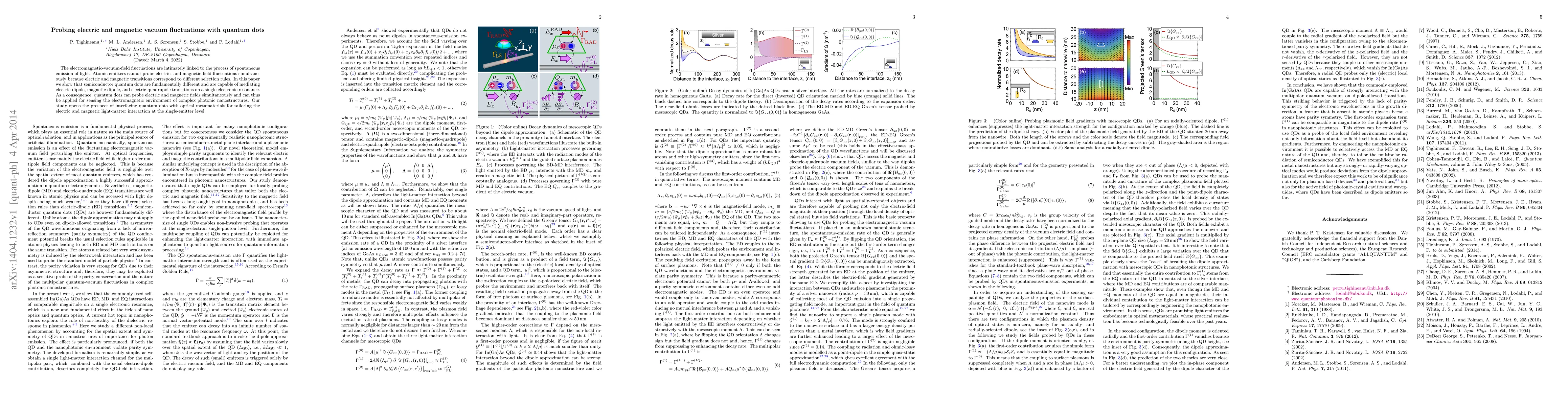 The electromagnetic-vacuum-field fluctuations are intimately linked to the process of spontaneous emission of light. Atomic emitters cannot probe electric- and magnetic-field fluctuations simultaneously because electric and magnetic transitions correspond to different selection rules. In this paper we show that semiconductor quantum dots are fundamentally different and are capable of mediating electric-dipole, magnetic-dipole, and electric-quadrupole transitions on a single electronic resonance. As a consequence, quantum dots can probe electric and magnetic fields simultaneously and can thus be applied for sensing the electromagnetic environment of complex photonic nanostructures. Our study opens the prospect of interfacing quantum dots with optical metamaterials for tailoring the electric and magnetic light-matter interaction at the single-emitter level.