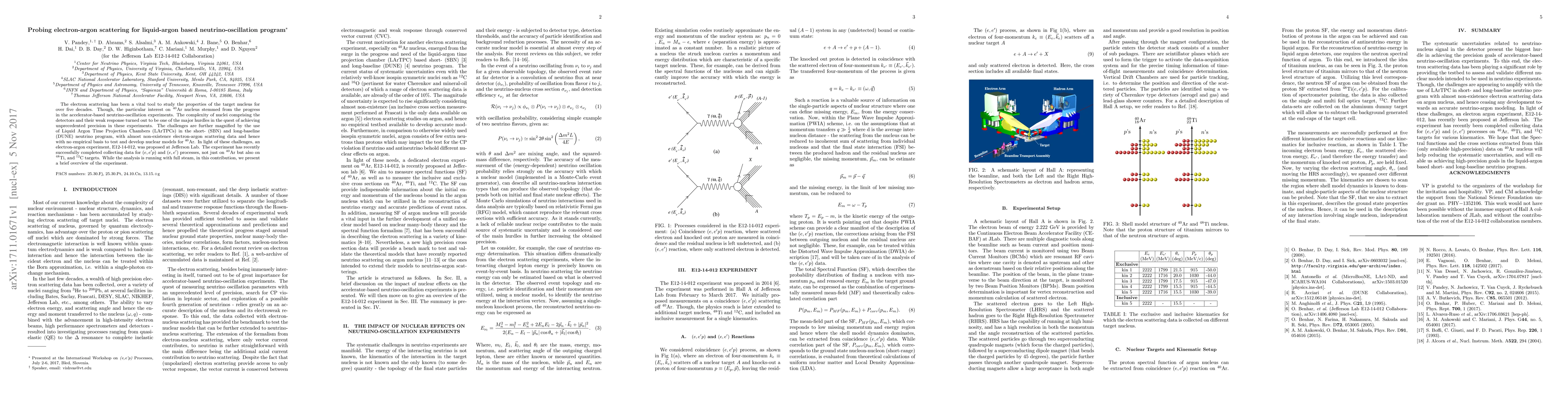 This paper discusses an electron-argon scattering experiment conducted at Jefferson Lab to study the properties of the $^{40}$Ar nucleus, crucial for the precision of neutrino-oscillation experiments using Liquid Argon Time Projection Chambers (LArTPCs). The experiment successfully collected data for various processes on $^{40}$Ar, $^{48}$Ti, and $^{12}$C targets, aiming to develop nuclear models for better experimental outcomes.