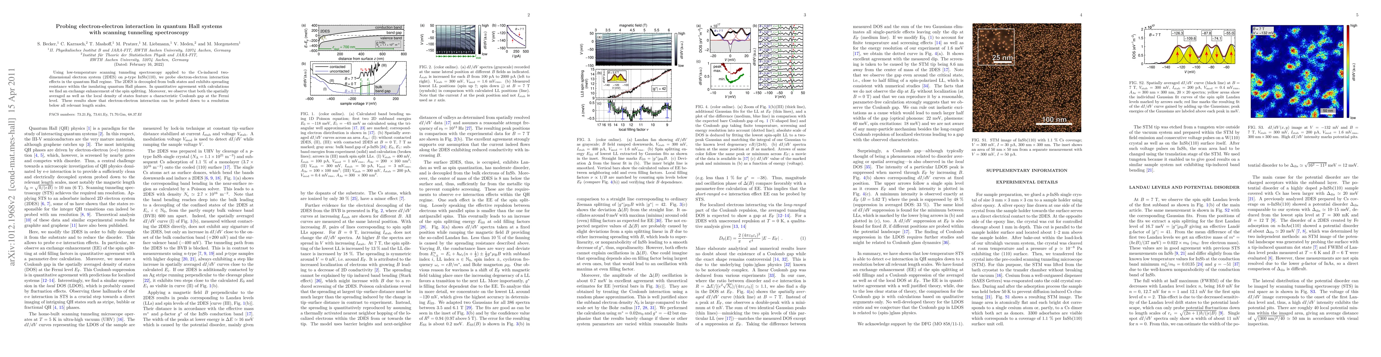 This study employs scanning tunneling spectroscopy to investigate electron-electron interactions in a quantum Hall system, revealing an exchange enhancement of spin splitting and a Coulomb gap in the density of states, demonstrating the impact of electron interactions at sub-length scale resolutions.