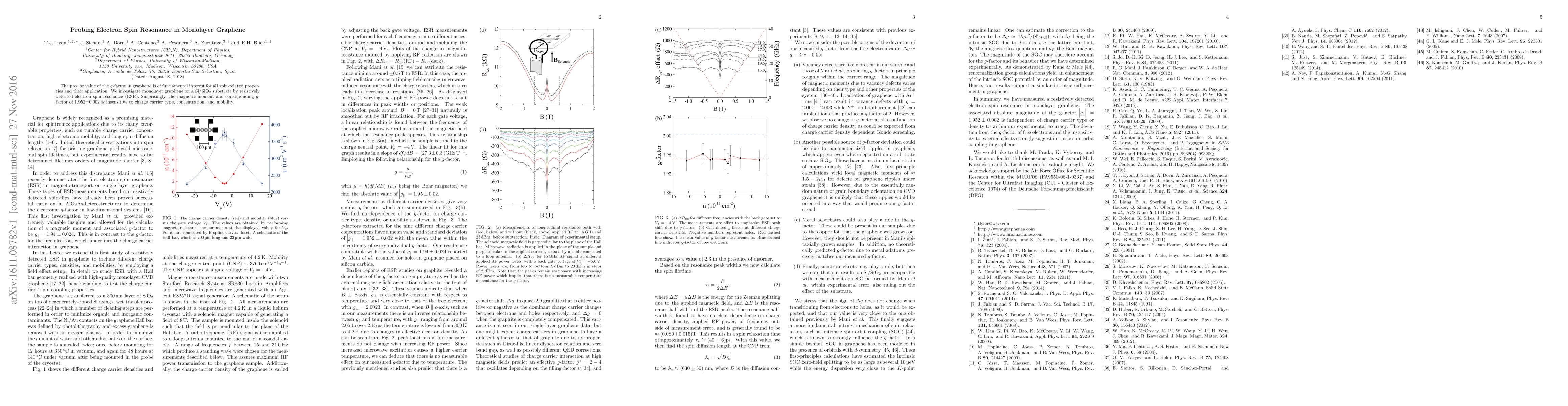 This paper investigates the electron spin resonance in monolayer graphene, finding a $g$-factor of 1.952±0.002 that remains unaffected by variations in charge carrier type, concentration, and mobility, highlighting its fundamental importance for spin-related properties.
