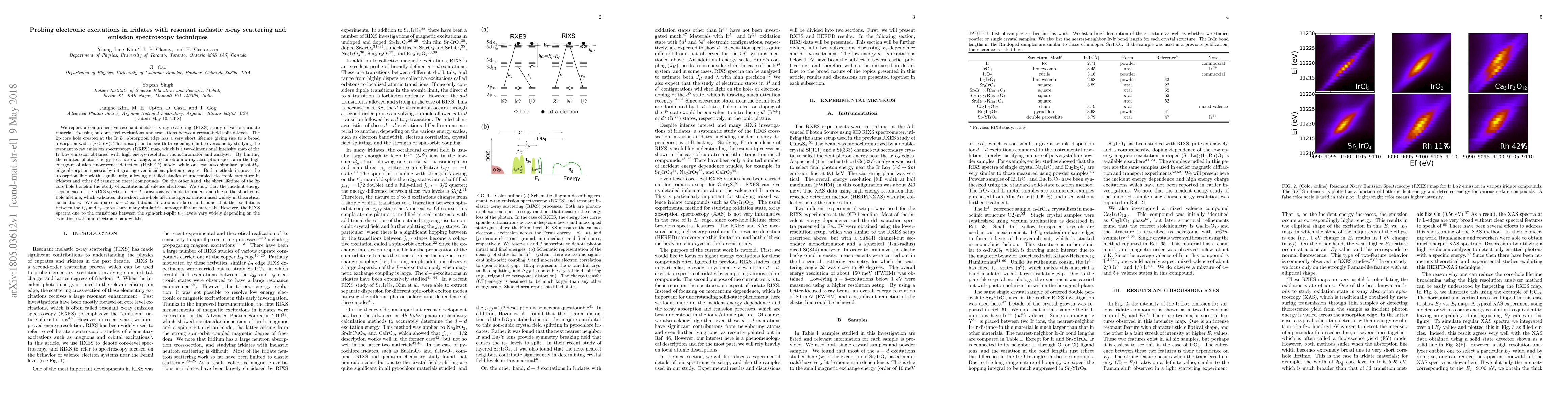 This study utilizes resonant inelastic x-ray scattering (RIXS) and resonant x-ray emission spectroscopy (RXES) to investigate electronic excitations in iridate materials, revealing similarities in $d-d$ transitions and variations in spin-orbit-split $t_{2g}$ level transitions influenced by oxidation states and electronic bandwidths.