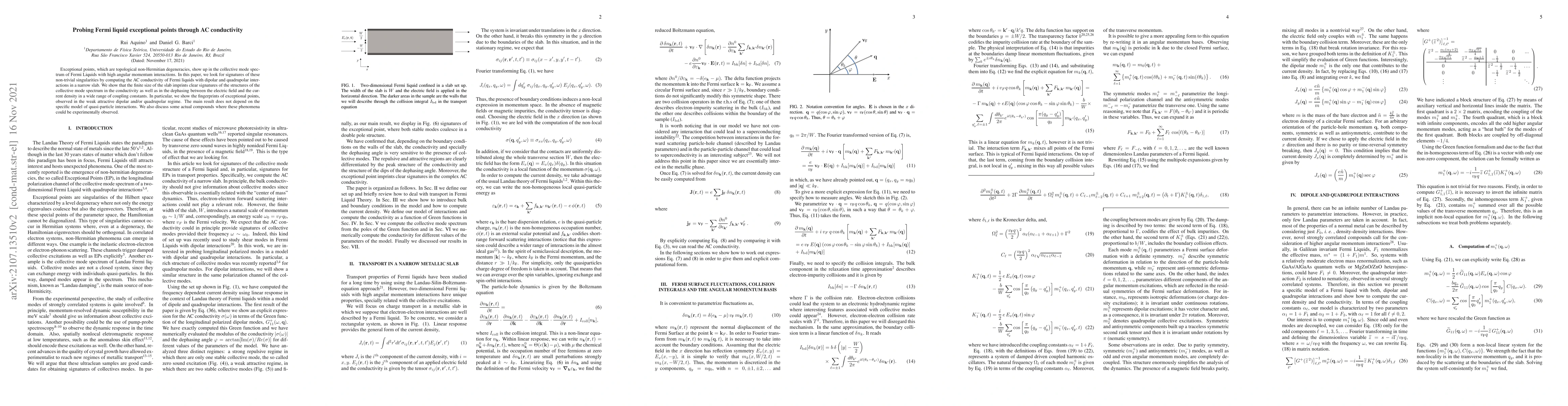 Exceptional points, which are topological non-Hermitian degeneracies, show up in the collective mode spectrum of Fermi Liquids with high angular momentum interactions. In this paper, we look for signatures of these non-trivial singularities by computing the AC conductivity of Fermi liquids with dipolar and quadrupolar interactions in a narrow slab. We show that the finite size of the slab imprints clear signatures of the structures of the collective mode spectrum in the conductivity as well as in the dephasing between the electric field and the current density in a wide range of coupling constants. In particular, we show the fingerprints of exceptional points, observed in the weak attractive dipolar and/or quadrupolar regime. The main result does not depend on the specific model of quasi-particle interactions. We also discuss some actual compounds where these phenomena could be experimentally observed.