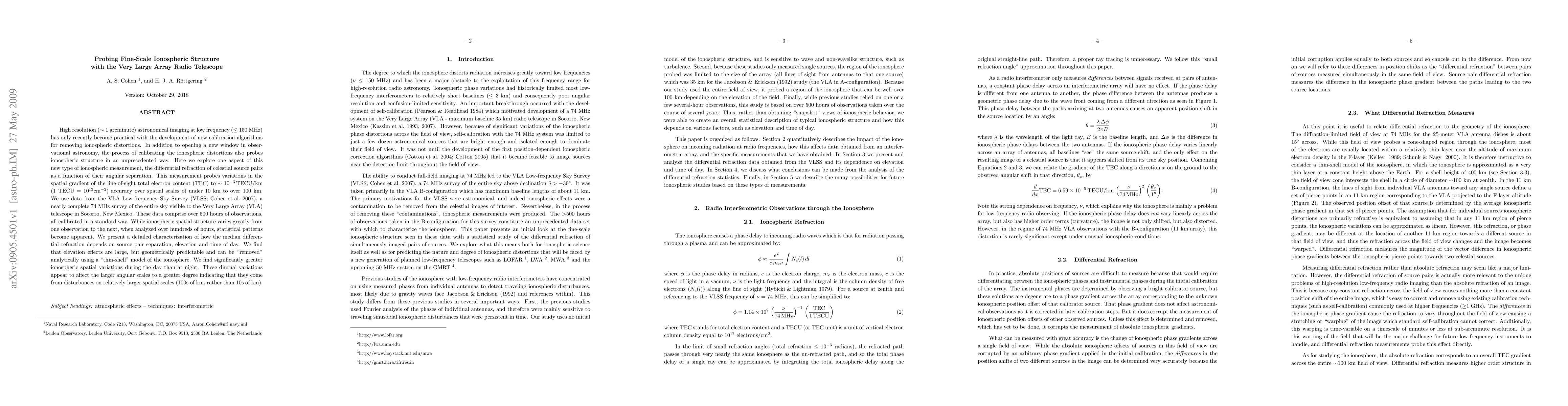 This study utilizes high-resolution low-frequency astronomical imaging from the VLA to probe fine-scale ionospheric structure, revealing unprecedented spatial gradients in the line-of-sight total electron content. Statistical analysis of differential refraction across celestial source pairs shows significant diurnal variations, with larger spatial disturbances affecting larger angular scales.