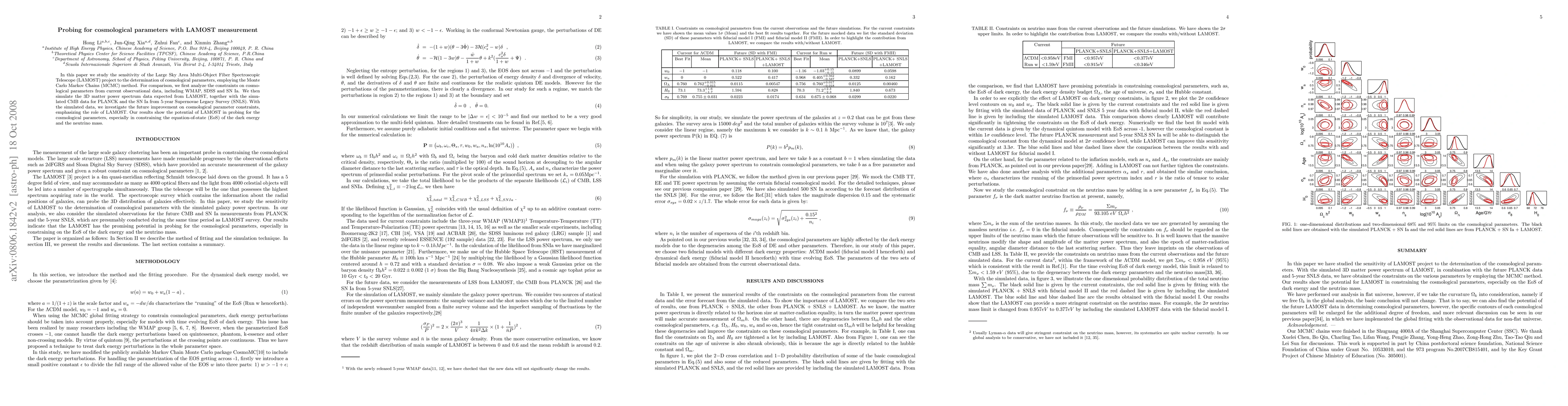 This paper assesses the Large Sky Area Multi-Object Fiber Spectroscopic Telescope (LAMOST) project's potential to determine cosmological parameters using the MCMC method, comparing its expected improvements with current data from WMAP, SDSS, and SN Ia. LAMOST is projected to significantly enhance constraints on the equation-of-state of dark energy and neutrino mass.