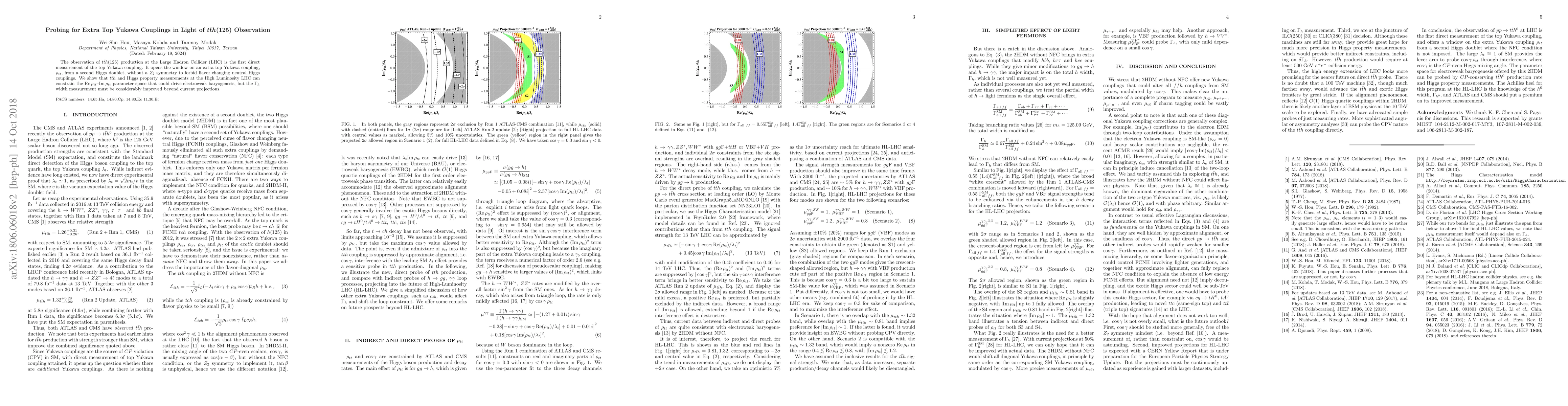 The observation of $t\bar th(125)$ production at the Large Hadron Collider (LHC) is the first direct measurement of the top Yukawa coupling. It opens the window on an extra top Yukawa coupling, $\rho_{tt}$, from a second Higgs doublet, without a $Z_2$ symmetry to forbid flavor changing neutral Higgs couplings. We show that $t\bar th$ and Higgs property measurements at the High Luminosity LHC can constrain the ${\rm Re}\,\rho_{tt}$--${\rm Im}\,\rho_{tt}$ parameter space that could drive electroweak baryogenesis, but the $\Gamma_h$ width measurement must be considerably improved beyond current projections.
