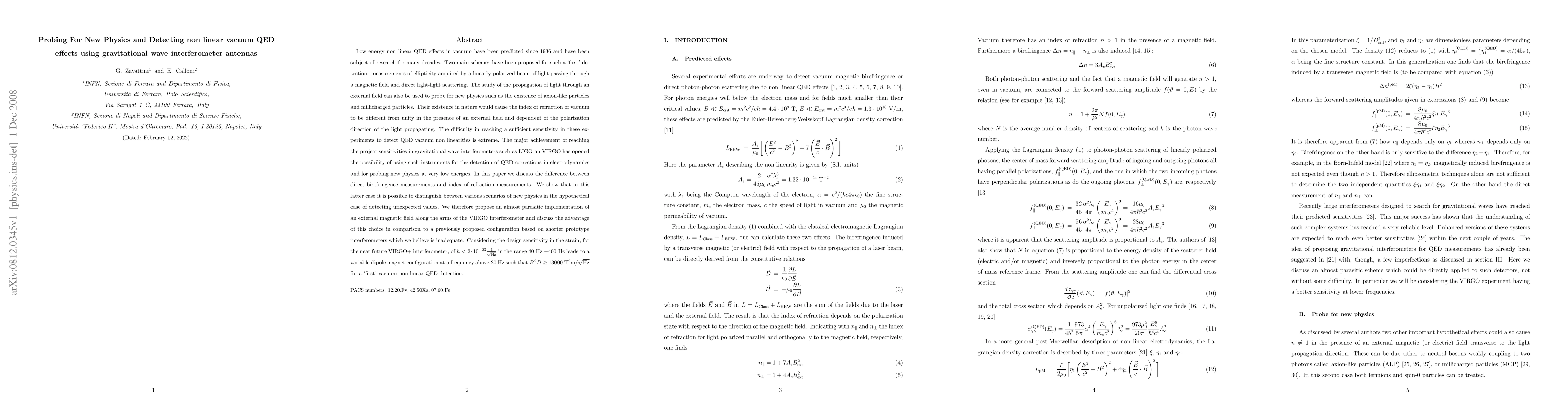 This paper explores the potential of gravitational wave interferometers like VIRGO to detect low-energy non-linear QED effects in vacuum, predicted since 1936. It proposes using the interferometer to measure birefringence and the index of refraction, aiming for a sensitivity that could reveal new physics such as axion-like particles and millicharged particles.