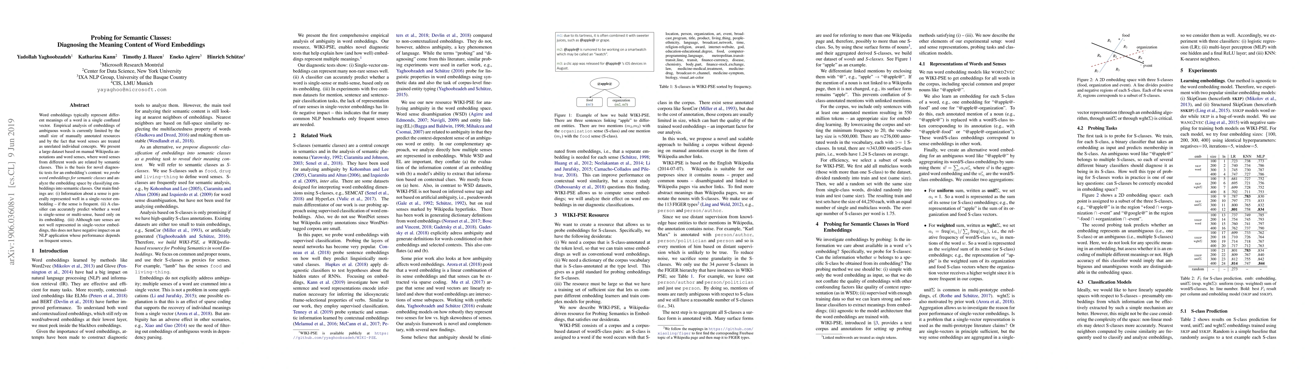 This paper introduces a large dataset of manually annotated Wikipedia word senses organized into semantic classes, enabling new diagnostic tests for word embeddings. It finds that frequent word senses are well represented in single-vector embeddings, while rare senses are less so, but this does not significantly affect NLP applications focused on frequent senses.