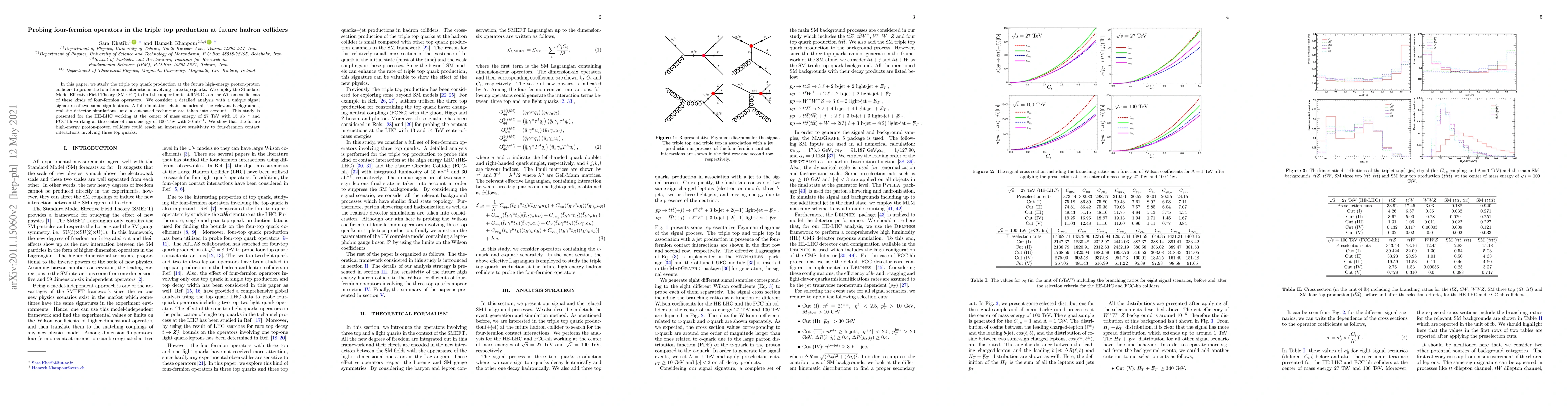 This paper investigates triple top quark production at future high-energy proton-proton colliders using the Standard Model Effective Field Theory to explore four-fermion interactions involving three top quarks. It demonstrates impressive sensitivity to these interactions at the HE-LHC and FCC-hh with detailed simulations and analysis.