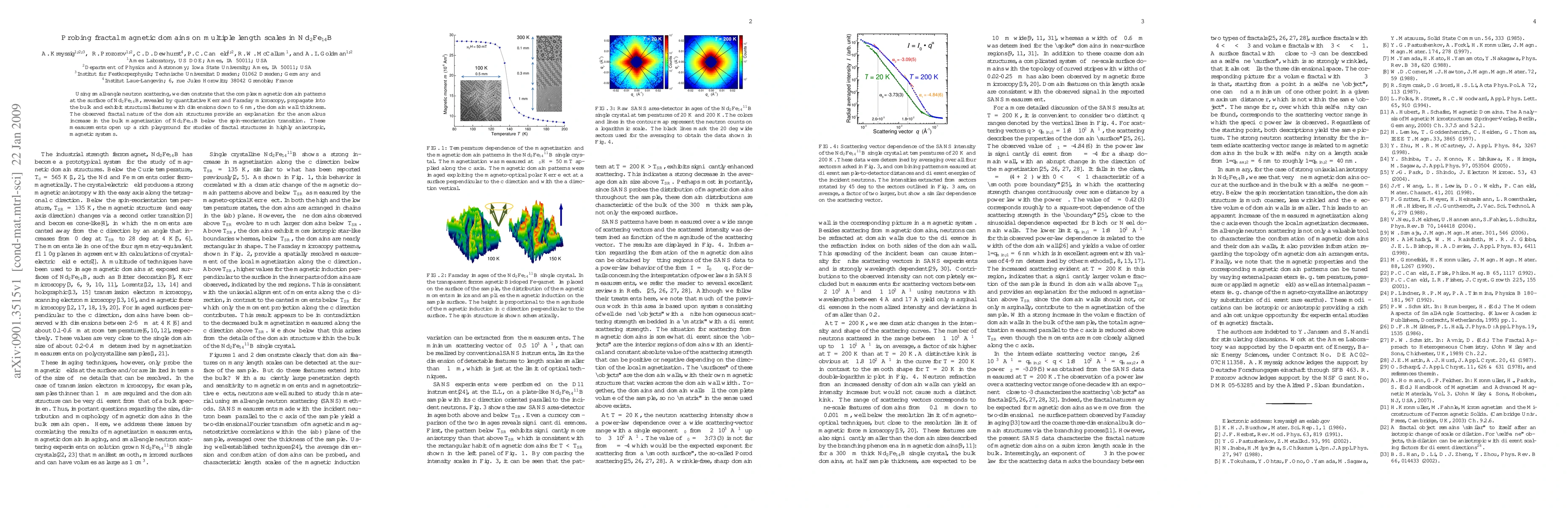 Using small-angle neutron scattering, we demonstrate that the complex magnetic domain patterns at the surface of Nd2Fe14B, revealed by quantitative Kerr and Faraday microscopy, propagate into the bulk and exhibit structural features with dimensions down to 6 nm, the domain wall thickness. The observed fractal nature of the domain structures provides an explanation for the anomalous increase in the bulk magnetization of Nd2Fe14B below the spin-reorientation transition. These measurements open up a rich playground for studies of fractal structures in highly anisotropic magnetic systems.