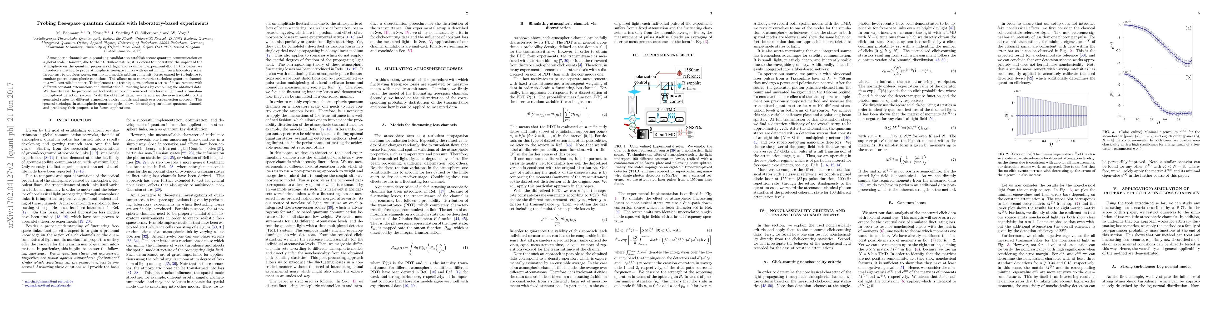 Atmospheric channels are a promising candidate to establish secure quantum communication on a global scale. However, due to their turbulent nature, it is crucial to understand the impact of the atmosphere on the quantum properties of light and examine it experimentally. In this paper, we introduce a method to probe atmospheric free-space links with quantum light on a laboratory scale. In contrast to previous works, our method models arbitrary intensity losses caused by turbulence to emulate general atmospheric conditions. This allows us to characterize turbulent quantum channels in a well-controlled manner. To implement this technique, we perform a series of measurements with different constant attenuations and simulate the fluctuating losses by combining the obtained data. We directly test the proposed method with an on-chip source of nonclassical light and a time-bin-multiplexed detection system. With the obtained data, we characterize the nonclassicality of the generated states for different atmospheric noise models and analyze a post-selection protocol. This general technique in atmospheric quantum optics allows for studying turbulent quantum channels and predicting their properties for future applications.