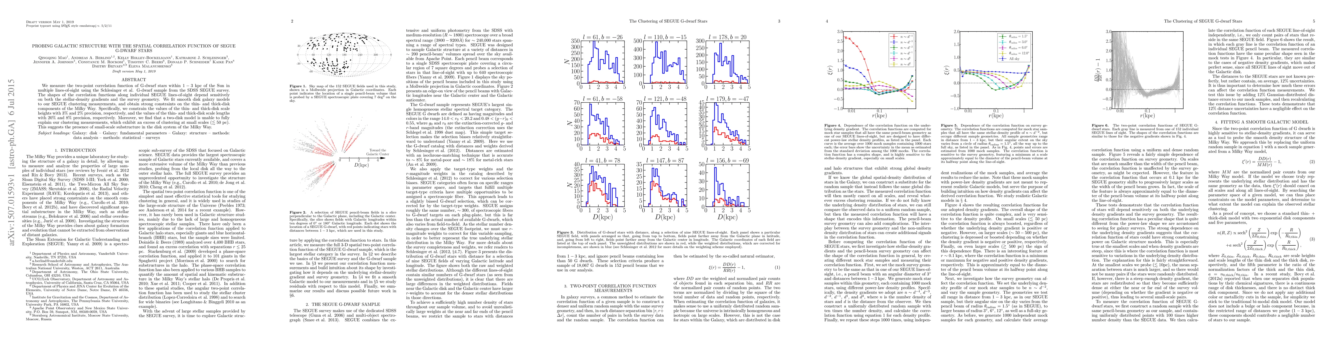 We measure the two-point correlation function of G-dwarf stars within 1-3 kpc of the Sun in multiple lines-of-sight using the Schlesinger et al. G-dwarf sample from the SDSS SEGUE survey. The shapes of the correlation functions along individual SEGUE lines-of-sight depend sensitively on both the stellar-density gradients and the survey geometry. We fit smooth disk galaxy models to our SEGUE clustering measurements, and obtain strong constraints on the thin- and thick-disk components of the Milky Way. Specifically, we constrain the values of the thin- and thick-disk scale heights with 3% and 2% precision, respectively, and the values of the thin- and thick-disk scale lengths with 20% and 8% precision, respectively. Moreover, we find that a two-disk model is unable to fully explain our clustering measurements, which exhibit an excess of clustering at small scales (< 50 pc). This suggests the presence of small-scale substructure in the disk system of the Milky Way.