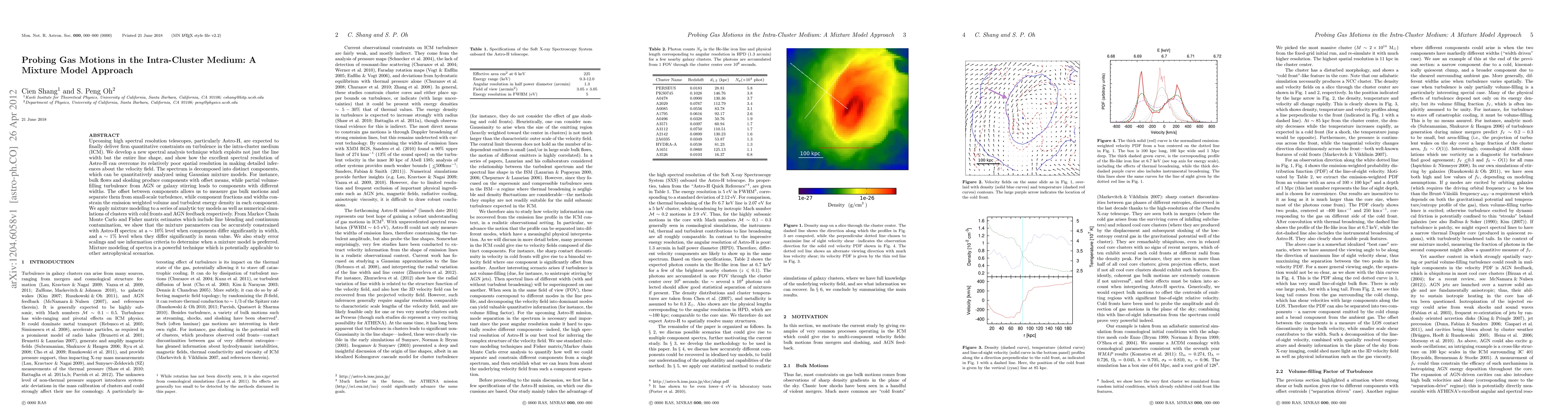 This paper develops a spectral analysis technique using Gaussian mixture models to probe gas motions in the intra-cluster medium (ICM) with high spectral resolution telescopes like Astro-H. The method decomposes the spectrum into distinct components to measure bulk gas motions and differentiate them from small-scale turbulence, achieving accurate constraints at a 10% level for width differences and 1% level for mean value differences.
