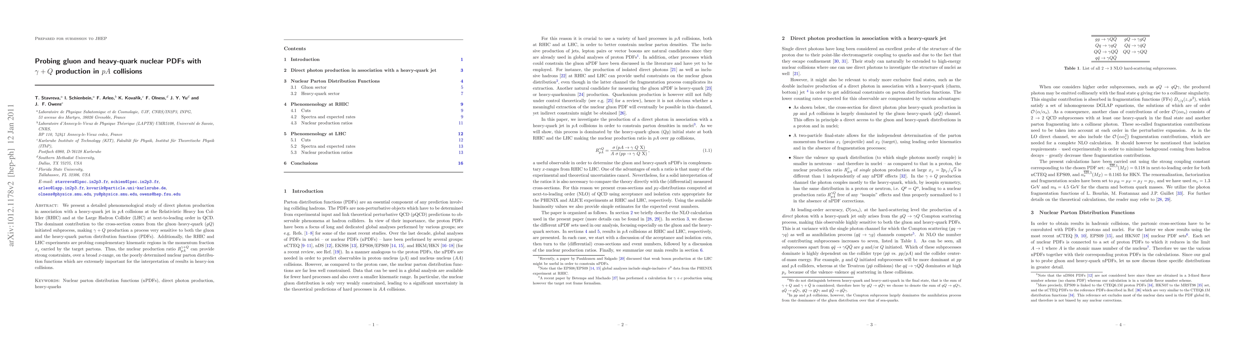 This paper investigates direct photon production alongside a heavy-quark jet in proton-nucleus collisions at RHIC and LHC, probing gluon and heavy-quark parton distribution functions through the dominant gQ initiated process. The study highlights how these experiments cover diverse kinematic regions, providing critical constraints on poorly determined nuclear PDFs.