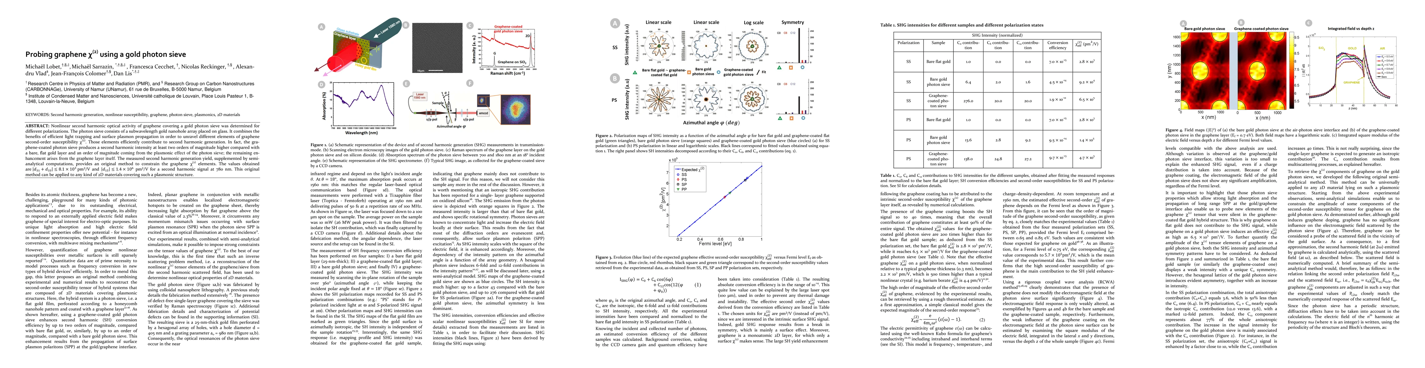 This study investigates the nonlinear optical activity of graphene using a gold photon sieve, revealing significant enhancements in second harmonic generation due to the combined effects of graphene and plasmonic light trapping. The results provide new constraints on the graphene's second-order susceptibility \chi(2) elements, offering a versatile method for characterizing 2D materials.