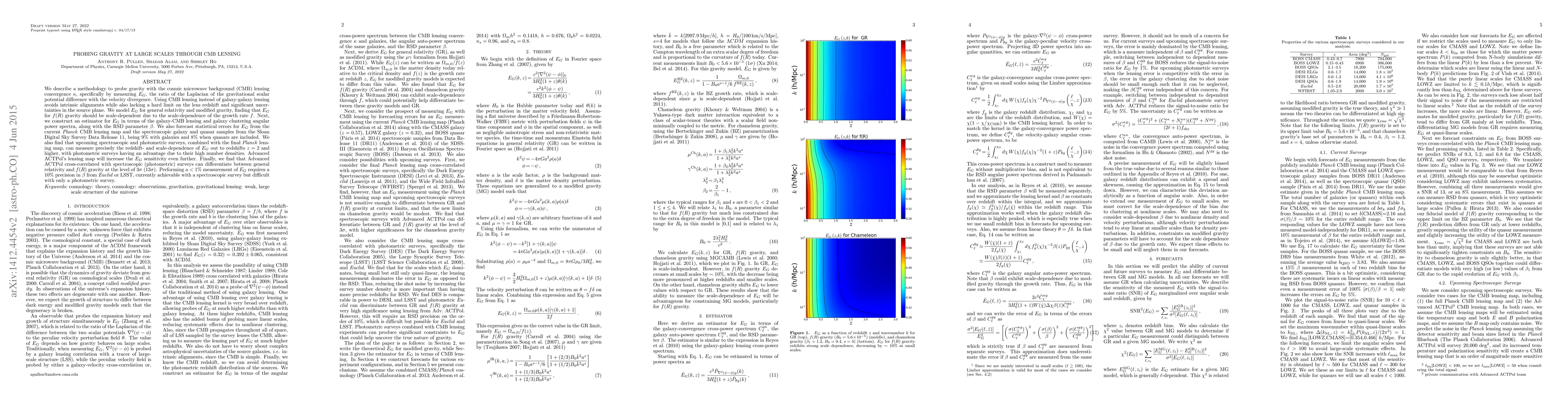 We describe a methodology to probe gravity with the cosmic microwave background (CMB) lensing convergence $\kappa$, specifically by measuring $E_G$, the ratio of the Laplacian of the gravitational scalar potential difference with the velocity divergence. Using CMB lensing instead of galaxy-galaxy lensing avoids intrinsic alignments while also lacking a hard limit on the lens redshift and significant uncertainties in the source plane. We model $E_G$ for general relativity and modified gravity, finding that $E_G$ for $f(R)$ gravity should be scale-dependent due to the scale-dependence of the growth rate $f$. Next, we construct an estimator for $E_G$ in terms of the galaxy-CMB lensing and galaxy clustering angular power spectra, along with the RSD parameter $\beta$. We also forecast statistical errors for $E_G$ from the current Planck CMB lensing map and the spectroscopic galaxy and quasar samples from the Sloan Digital Sky Survey Data Release 11, being 9% with galaxies and 8% when quasars are included. We also find that upcoming spectroscopic and photometric surveys, combined with the final Planck lensing map, can measure precisely the redshift- and scale-dependence of $E_G$ out to redshifts $z=2$ and higher, with photometric surveys having an advantage due to their high number densities. Advanced ACTPol's lensing map will increase the $E_G$ sensitivity even further. Finally, we find that Advanced ACTPol cross-correlated with spectroscopic (photometric) surveys can differentiate between general relativity and $f(R)$ gravity at the level of $3\sigma$ ($13\sigma$). Performing a $<1$% measurement of $E_G$ requires a 10% precision in $\beta$ from Euclid or LSST, currently achievable with a spectroscopic survey but difficult with only a photometric survey.