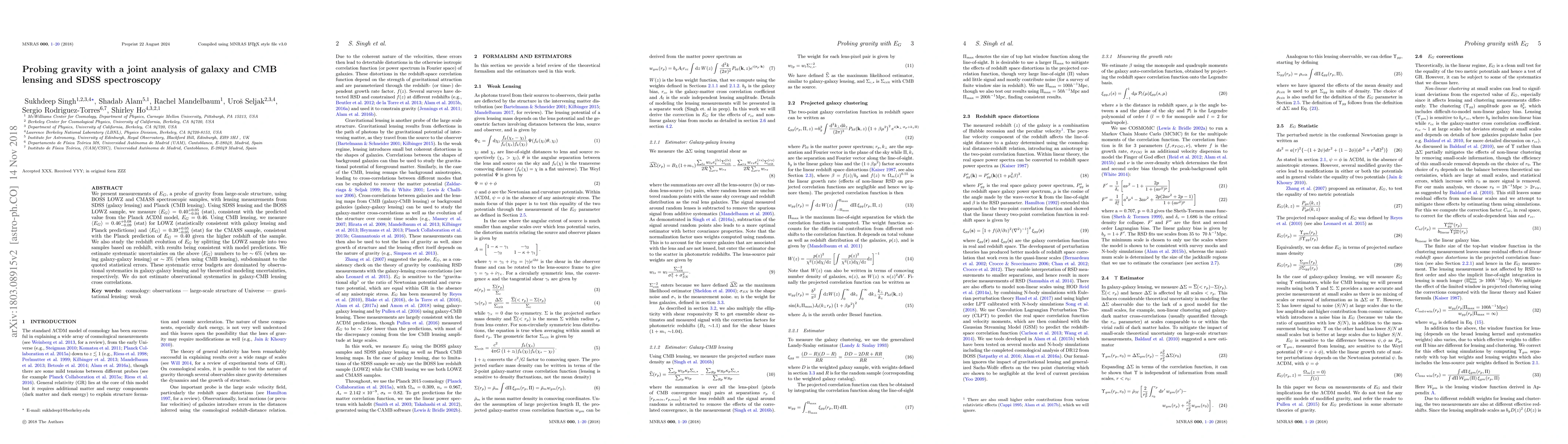 This paper measures $E_G$, a probe of gravity from large-scale structure, using galaxy and CMB lensing data from SDSS and Planck, and finds values consistent with predictions from the Planck $\Lambda$CDM model. Systematic uncertainties are estimated to be subdominant to statistical errors.