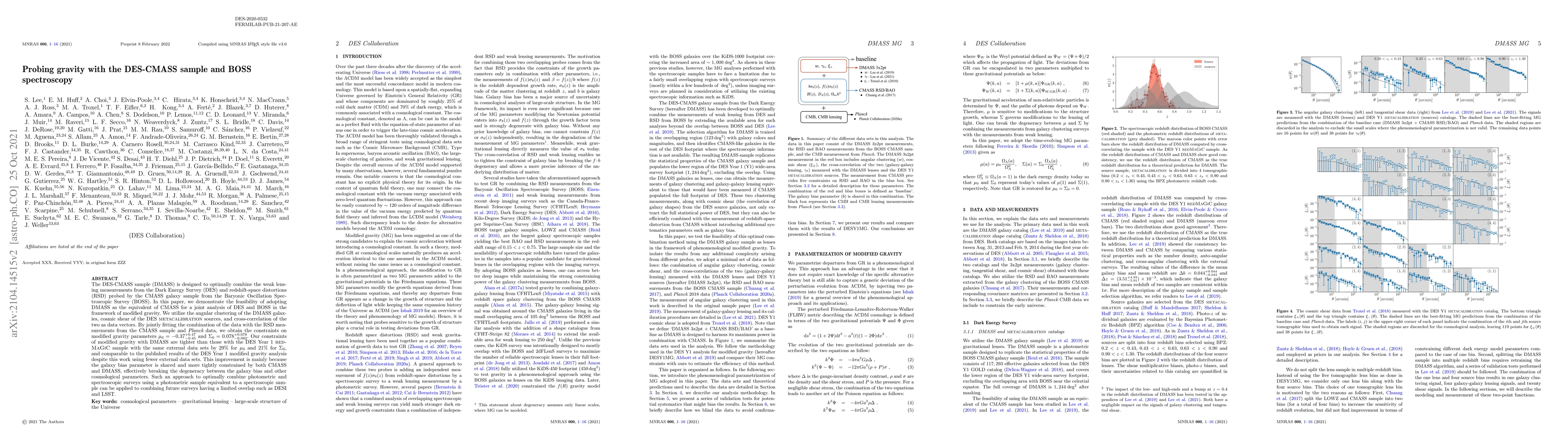 This paper explores the use of the DES-CMASS sample to probe gravity through the combination of weak lensing and redshift-space distortions, achieving tighter constraints on modified gravity parameters compared to previous analyses, without detecting significant deviations from General Relativity. The methodology can be applied to future surveys like DESI and LSST.