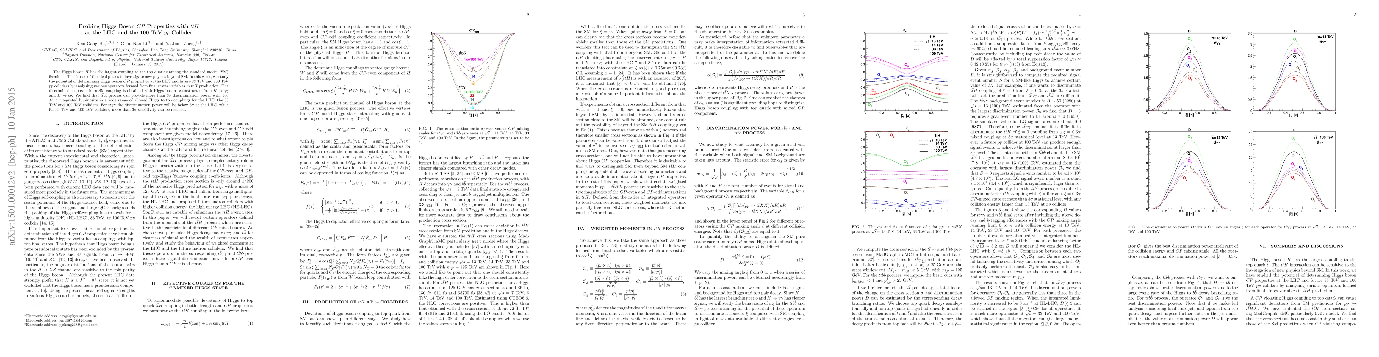 This paper investigates the potential to determine the CP properties of the Higgs boson via $t\bar{t}H$ production at the LHC and future 33 TeV and 100 TeV colliders. It finds that the $t\bar{t}b\bar{b}$ process can achieve over 3$\sigma$ discrimination power with 300 $fb^{-1}$ luminosity across various Higgs-top couplings.