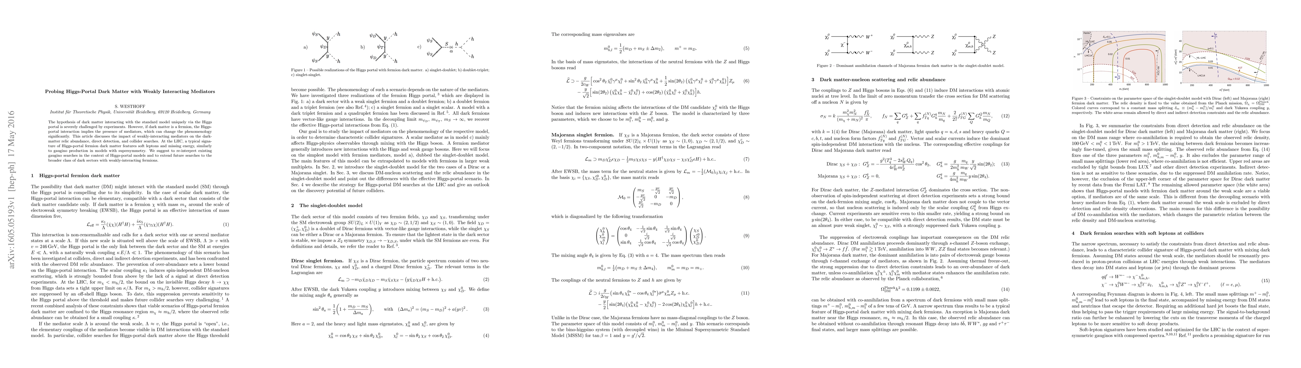 The hypothesis of dark matter interacting with the standard model uniquely via the Higgs portal is severely challenged by experiments. However, if dark matter is a fermion, the Higgs-portal interaction implies the presence of mediators, which can change the phenomenology significantly. This article discusses the impact of weakly-interacting mediators on the dark-matter relic abundance, direct detection, and collider searches. At the LHC, a typical signature of Higgs-portal fermion dark matter features soft leptons and missing energy, similarly to gaugino production in models with supersymmetry. We suggest to re-interpret existing gaugino searches in the context of Higgs-portal models and to extend future searches to the broader class of dark sectors with weakly-interacting fermions.
