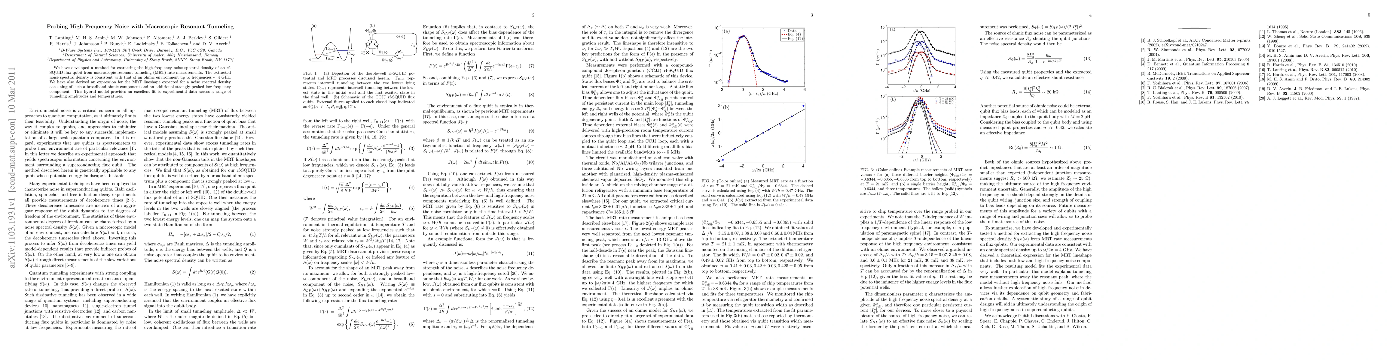 This paper presents a method to determine the high-frequency noise spectral density of an rf-SQUID flux qubit using macroscopic resonant tunneling rate measurements, showing consistency with an ohmic environment up to 4 GHz. It also introduces a hybrid noise model that fits experimental data well, combining broadband ohmic noise with a strongly peaked low-frequency component.