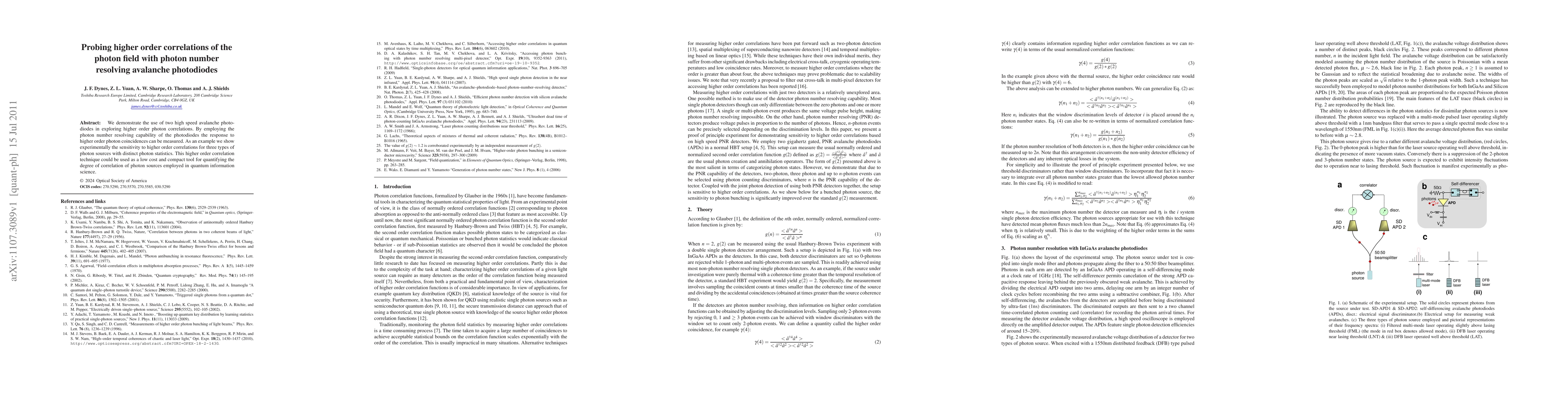 This paper demonstrates the use of high-speed avalanche photodiodes to measure higher order photon correlations, showcasing experimental sensitivity to these correlations for various photon sources. The technique provides a cost-effective and compact method for quantifying photon source correlations in quantum information science.