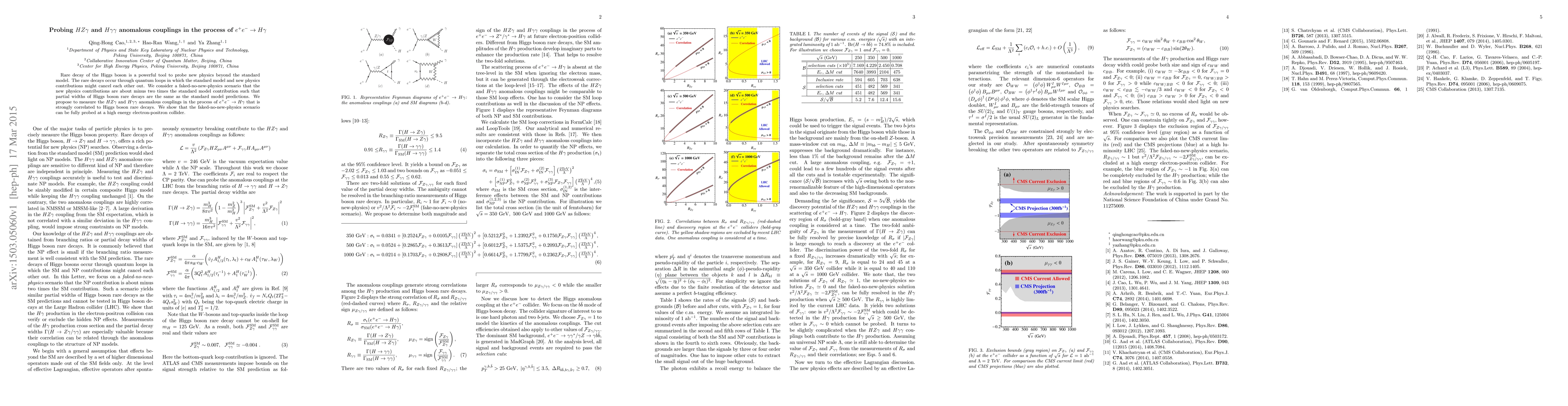 Rare decay of the Higgs boson is a powerful tool to probe new physics beyond the standard model. The rare decays occur through quantum loops in which the standard model and new physics contributions might cancel each other out. We consider a faked-no-new-physics scenario that the new physics contributions are about minus two times the standard model contribution such that partial widths of Higgs boson rare decays are the same as the standard model predictions. We propose to measure the $HZ\gamma$ and $H\gamma\gamma$ anomalous couplings in the process of $e^+ e^- \to H\gamma$ that is strongly correlated to Higgs boson rare decays. We show that the faked-no-new-physics scenario can be fully probed at a high energy electron-positron collider.