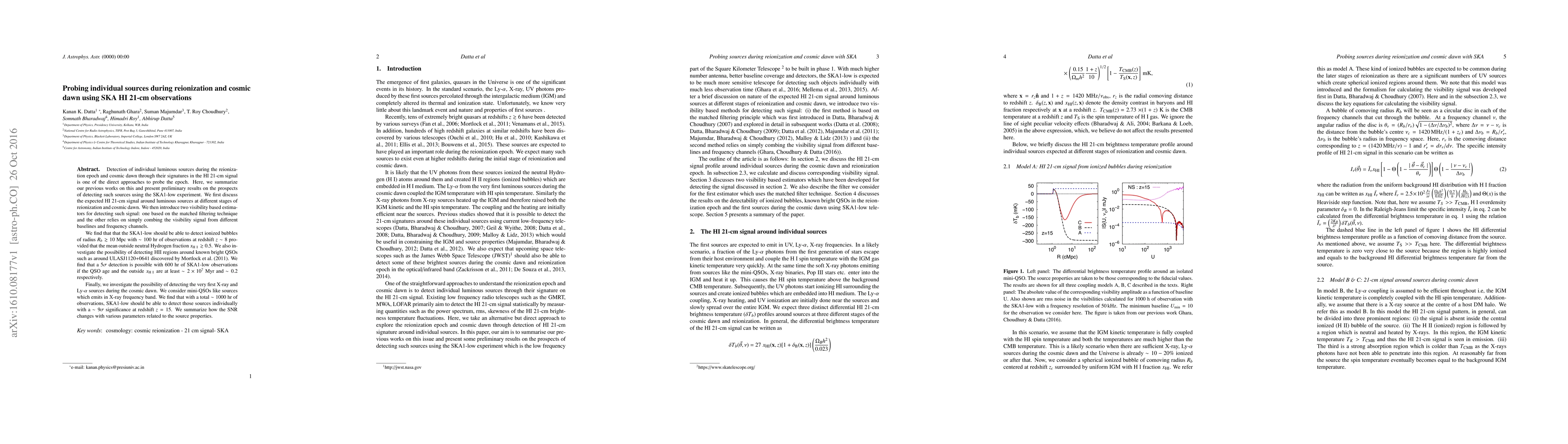 Detection of individual luminous sources during the reionization epoch and cosmic dawn through their signatures in the HI 21-cm signal is one of the direct approaches to probe the epoch. Here, we summarize our previous works on this and present preliminary results on the prospects of detecting such sources using the SKA1-low experiment. We first discuss the expected HI 21-cm signal around luminous sources at different stages of reionization and cosmic dawn. We then introduce two visibility based estimators for detecting such signal: one based on the matched filtering technique and the other relies on simply combing the visibility signal from different baselines and frequency channels. We find that that the SKA1-low should be able to detect ionized bubbles of radius $R_b \gtrsim 10$ Mpc with $\sim 100$ hr of observations at redshift $z \sim 8$ provided that the mean outside neutral Hydrogen fraction $ x_{\rm HI} \gtrsim 0.5$. We also investigate the possibility of detecting HII regions around known bright QSOs such as around ULASJ1120+0641 discovered by Mortlock et al. 2011. We find that a $5 \sigma$ detection is possible with $600$ hr of SKA1-low observations if the QSO age and the outside $ x_{\rm HI} $ are at least $\sim 2 \times 10^7$ Myr and $\sim 0.2$ respectively. Finally, we investigate the possibility of detecting the very first X-ray and Ly-$\alpha$ sources during the cosmic dawn. We consider mini-QSOs like sources which emits in X-ray frequency band. We find that with a total $\sim 1000$ hr of observations, SKA1-low should be able to detect those sources individually with a $\sim 9 \sigma$ significance at redshift $z=15$. We summarize how the SNR changes with various parameters related to the source properties.