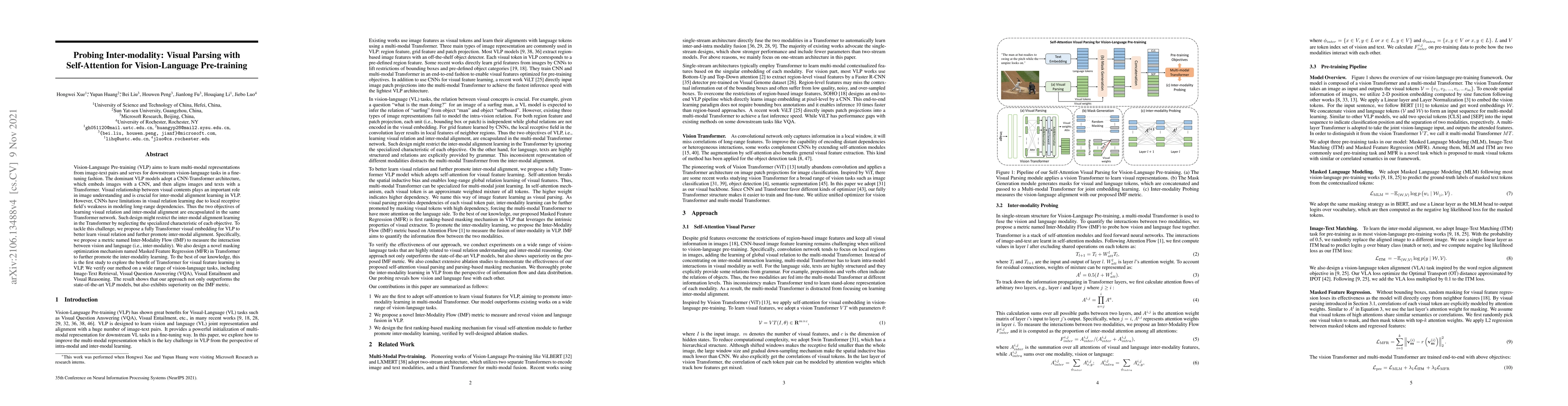 Researchers propose a new approach to vision-language pre-training using self-attention mechanisms to improve visual relation learning and inter-modal alignment, achieving better performance on various tasks.