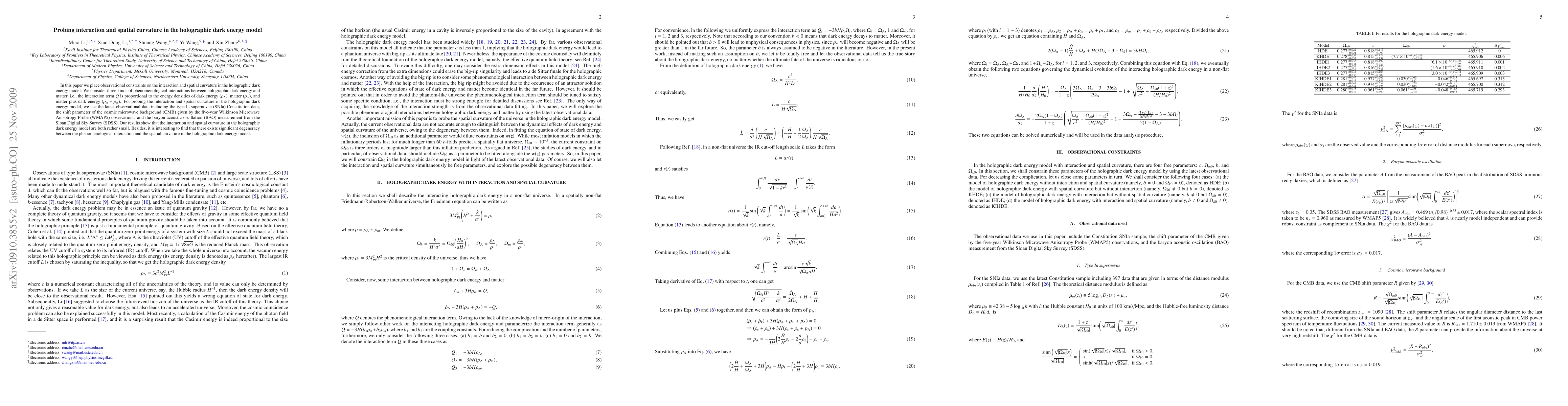 This paper constrains interaction and spatial curvature in the holographic dark energy model using observational data from SNIa, CMB, and BAO. Results indicate minimal interaction and curvature, with notable degeneracy between interaction and spatial curvature.