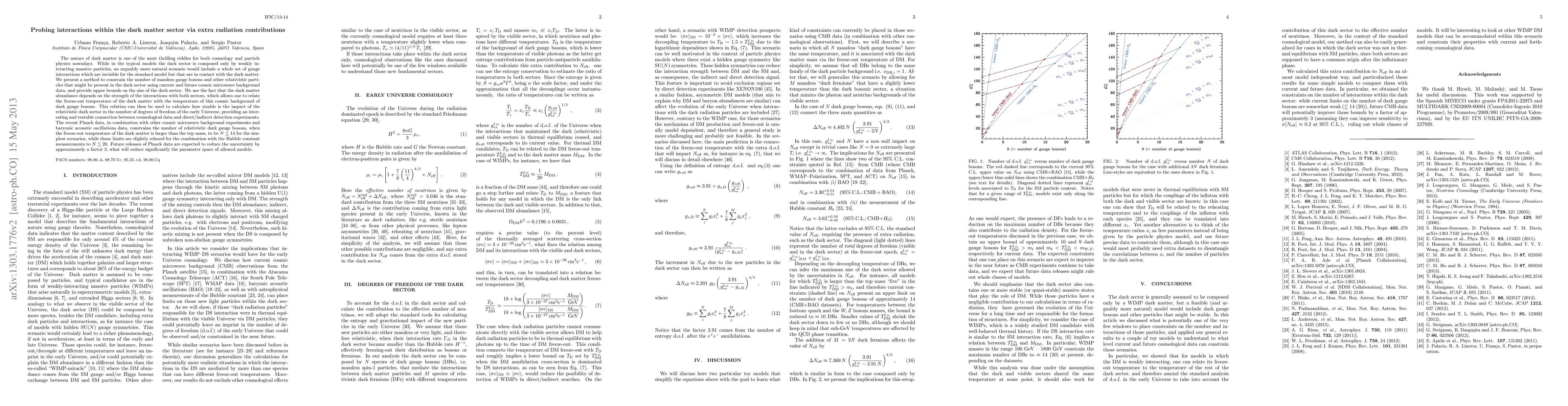 The nature of dark matter is one of the most thrilling riddles for both cosmology and particle physics nowadays. While in the typical models the dark sector is composed only by weakly interacting massive particles, an arguably more natural scenario would include a whole set of gauge interactions which are invisible for the standard model but that are in contact with the dark matter. We present a method to constrain the number of massless gauge bosons and other relativistic particles that might be present in the dark sector using current and future cosmic microwave background data, and provide upper bounds on the size of the dark sector. We use the fact that the dark matter abundance depends on the strength of the interactions with both sectors, which allows one to relate the freeze-out temperature of the dark matter with the temperature of {this cosmic background of dark gauge bosons}. This relation can then be used to calculate how sizable is the impact of the relativistic dark sector in the number of degrees of freedom of the early Universe, providing an interesting and testable connection between cosmological data and direct/indirect detection experiments. The recent Planck data, in combination with other cosmic microwave background experiments and baryonic acoustic oscillations data, constrains the number of relativistic dark gauge bosons, when the freeze-out temperature of the dark matter is larger than the top mass, to be N \lesssim 14 for the simplest scenarios, while those limits are slightly relaxed for the combination with the Hubble constant measurements to N \lesssim 20. Future releases of Planck data are expected to reduce the uncertainty by approximately a factor 3, what will reduce significantly the parameter space of allowed models.