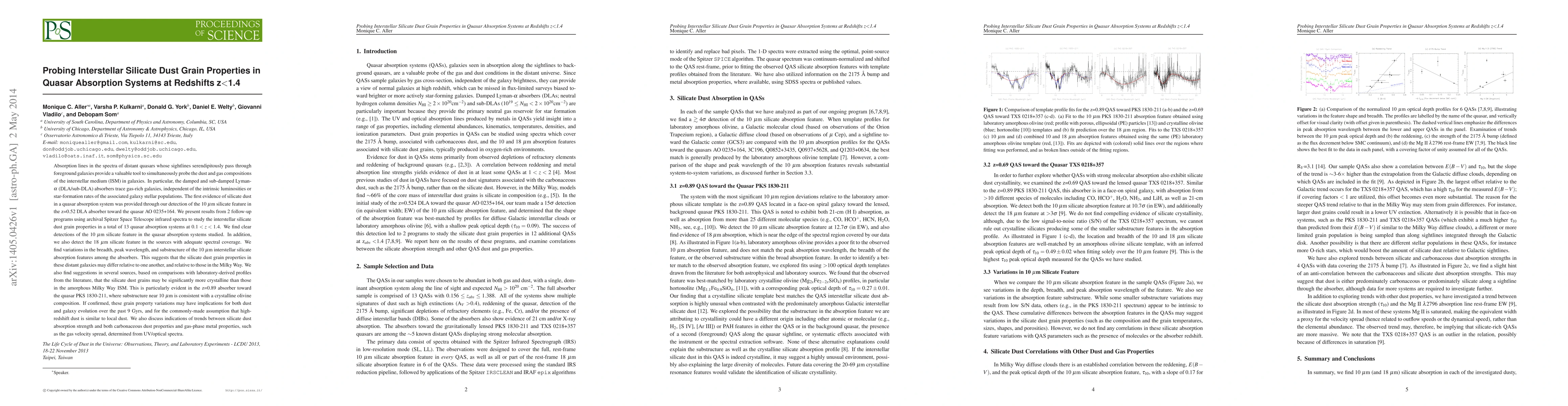 of silicate dust in a quasar absorption system (QAS) was provided through our