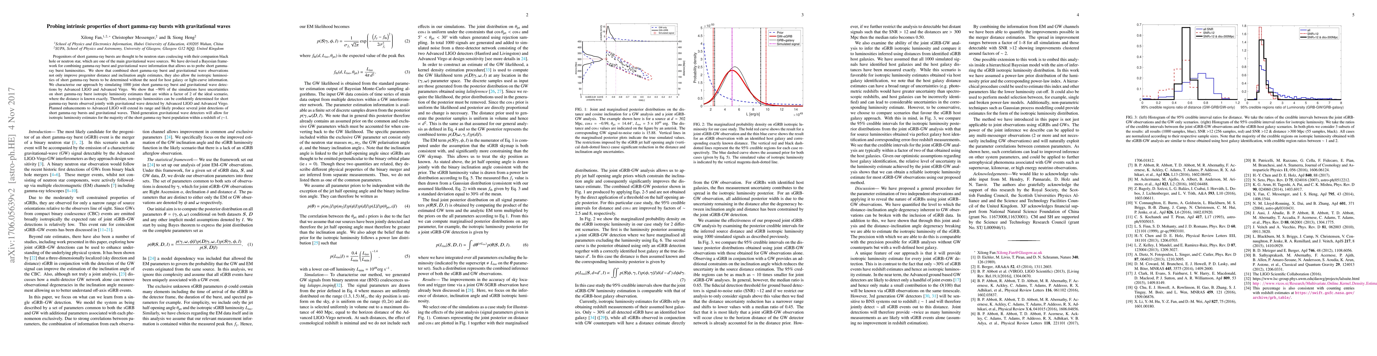 This paper develops a Bayesian framework to combine gamma-ray burst and gravitational wave data, enabling the determination of short gamma-ray burst isotropic luminosities without host galaxy or light-curve information. The study demonstrates that joint observations can significantly improve distance and inclination angle estimates, with simulations showing ${\sim}90\%$ accuracy within a factor of 2 for luminosity estimates.