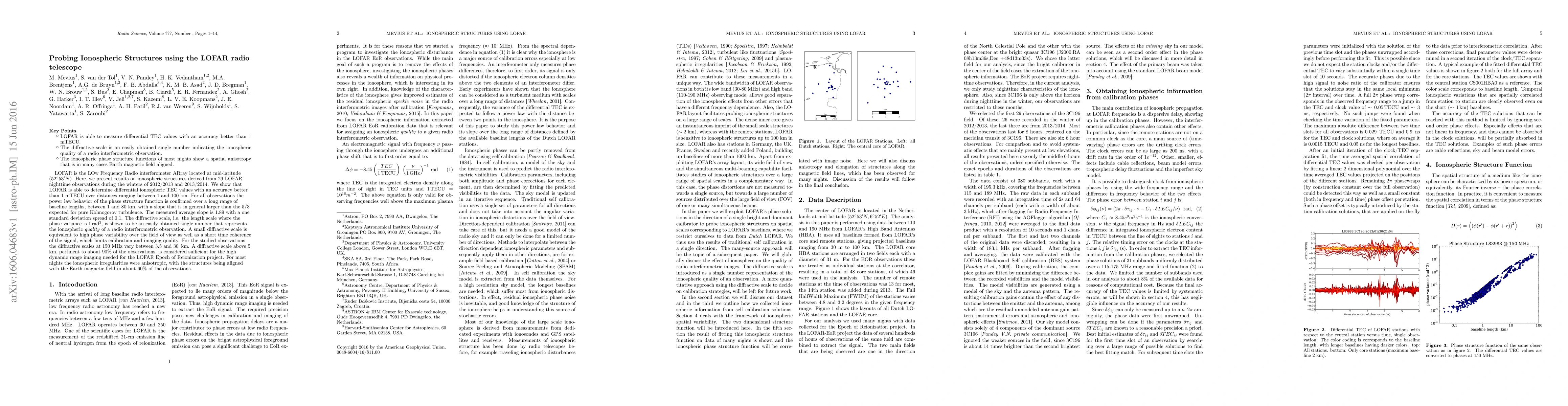 The LOFAR radio telescope successfully determines differential ionospheric TEC values with high accuracy, revealing anisotropic ionospheric structures aligned with Earth's magnetic field. The diffractive scale, a measure of phase variability, indicates sufficient imaging quality for the LOFAR Epoch of Reionization project.
