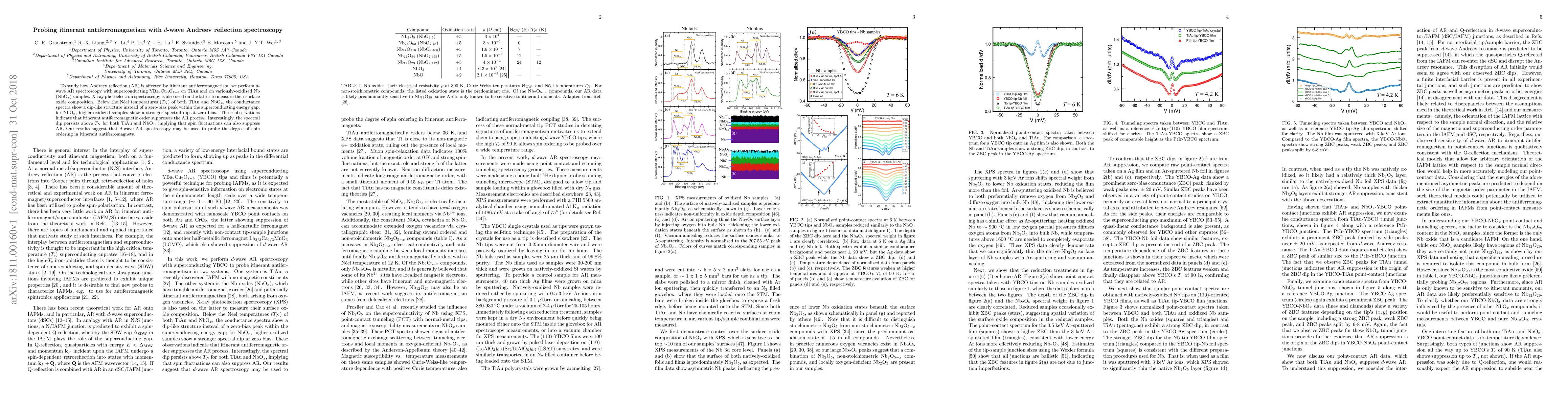 To study how Andreev reflection (AR) is affected by itinerant antiferromagnetism, we perform $d$-wave AR spectroscopy with superconducting YBa$_2$Cu$_3$O$_{7-\delta}$ on TiAu and on variously-oxidized Nb (NbO$_x$) samples. X-ray photoelectron spectroscopy is also used on the latter to measure their surface oxide composition. Below the N\'eel temperatures ($T_N$) of both TiAu and NbO$_x$, the conductance spectra show a dip-like structure instead of a zero-bias peak within the superconducting energy gap; for NbO$_x$, higher-oxidized samples show a stronger spectral dip at zero bias. These observations indicate that itinerant antiferromagnetic order suppresses the AR process. Interestingly, the spectral dip persists above $T_N$ for both TiAu and NbO$_x$, implying that spin fluctuations can also suppress AR. Our results suggest that $d$-wave AR spectroscopy may be used to probe the degree of spin ordering in itinerant antiferromagnets.