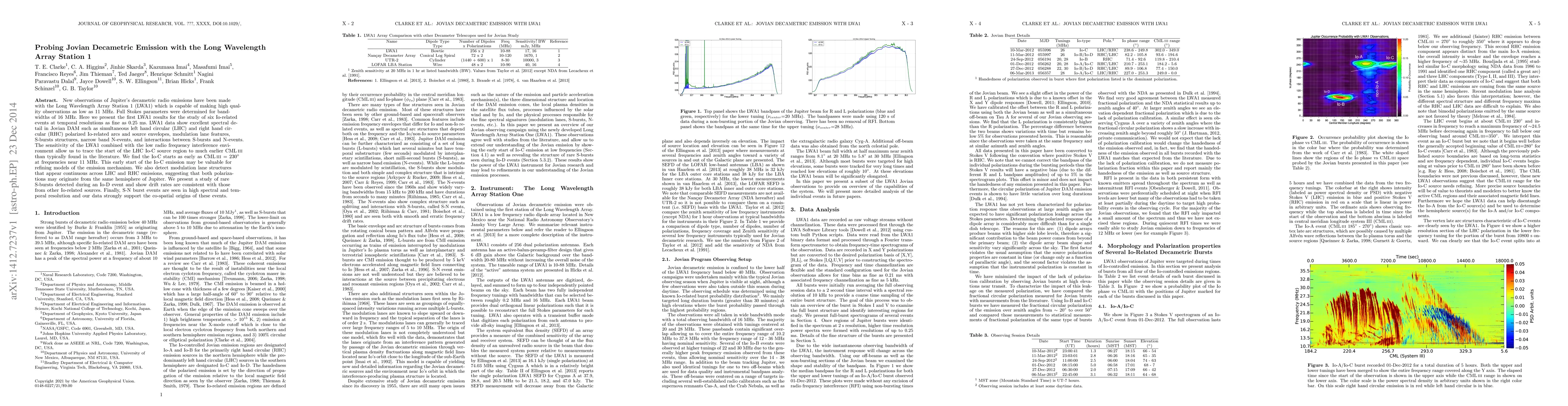 New observations of Jupiter's decametric radio emissions have been made with the Long Wavelength Array Station 1 (LWA1) which is capable of making high quality observations as low as 11 MHz. Full Stokes parameters were determined for bandwidths of 16 MHz. Here we present the first LWA1 results for the study of six Io-related events at temporal resolutions as fine as 0.25 ms. LWA1 data show excellent spectral detail in Jovian DAM such as simultaneous left hand circular (LHC) and right hand circular (RHC) polarized Io-related arcs and source envelopes, modulation lane features, S-bursts structures, narrow band N-events, and interactions between S-bursts and N-events. The sensitivity of the LWA1 combined with the low radio frequency interference environment allow us to trace the start of the LHC Io-C source region to much earlier CMLIII than typically found in the literature. We find the Io-C starts as early as CMLIII = 230 degrees at frequencies near 11 MHz. This early start of the Io-C emission may be valuable for refining models of the emission mechanism. We also detect modulation lane structures that appear continuous across LHC and RHC emissions, suggesting that both polarizations may originate from the same hemisphere of Jupiter. We present a study of rare S-bursts detected during an Io-D event and show drift rates are consistent with those from other Io-related sources. Finally, S-N burst events are seen in high spectral and temporal resolution and our data strongly support the co-spatial origins of these events.