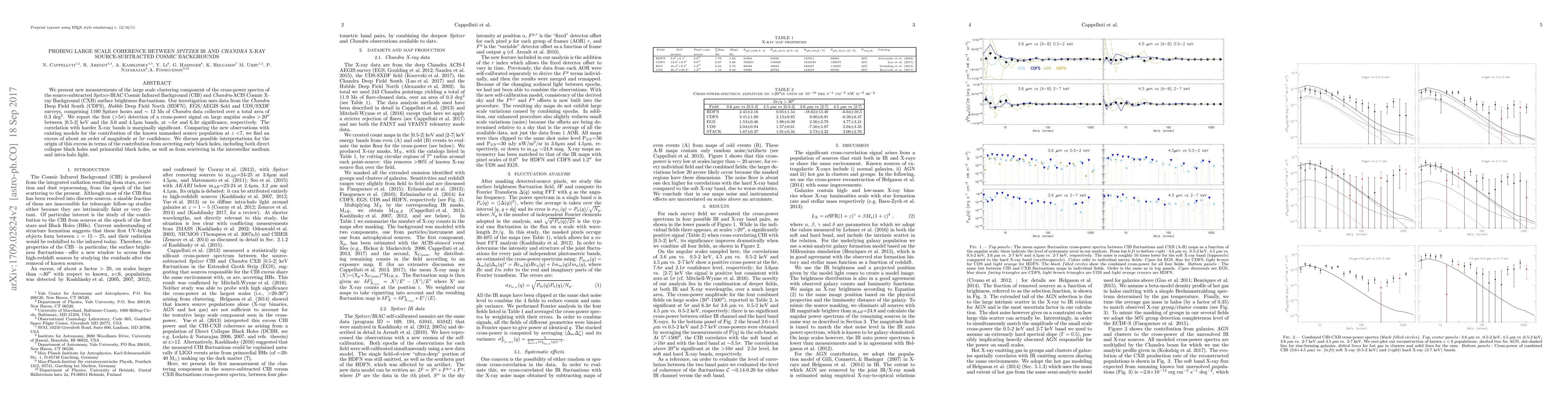 We present new measurements of the large scale clustering component of the cross-power spectra of the source-subtracted Spitzer-IRAC Cosmic Infrared Background (CIB) and Chandra-ACIS Cosmic X-ray Background (CXB) surface brightness fluctuations. Our investigation uses data from the Chandra Deep Field South (CDFS), Hubble Deep Field North (HDFN), EGS/AEGIS field and UDS/SXDF surveys, comprising 1160 Spitzer hours and $\sim$ 12 Ms of Chandra data collected over a total area of 0.3 deg$^2$. We report the first ($>$5$\sigma$) detection of a cross-power signal on large angular scales >20 arcsec between [0.5-2] keV and the 3.6 and 4.5$\mu$m bands, at $\sim$5$\sigma$ and 6.3$\sigma$ significance, respectively. The correlation with harder X-ray bands is marginally significant. Comparing the new observations with existing models for the contribution of the known unmasked source population at $z<$7, we find an excess of about an order of magnitude at 5$\sigma$ confidence. We discuss possible interpretations for the origin of this excess in terms of the contribution from accreting early black holes, including both direct collapse black holes and primordial black holes, as well as from scattering in the interstellar medium and intra-halo light.