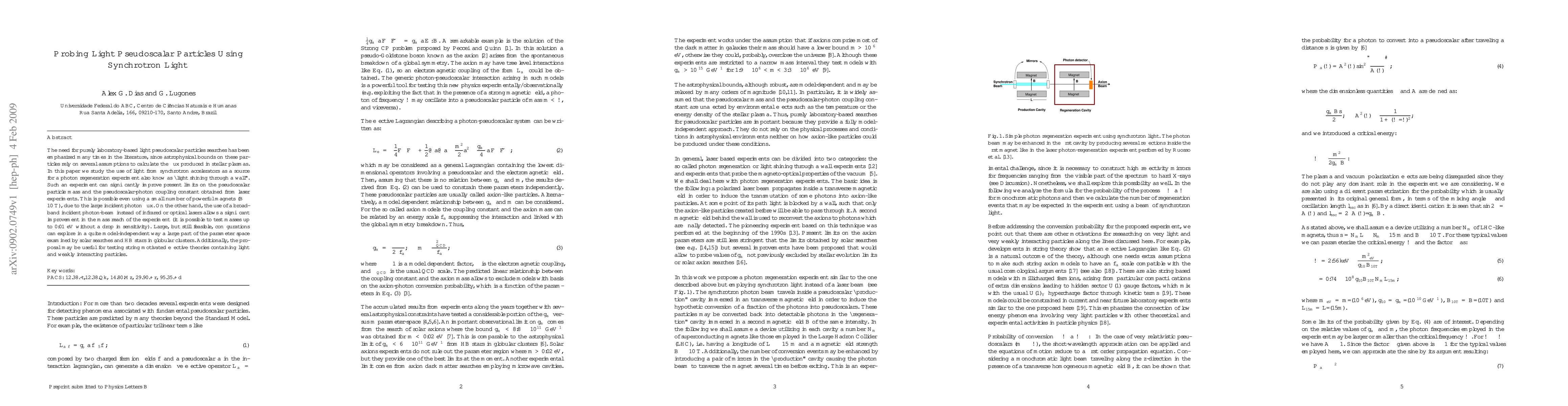 The need for purely laboratory-based light pseudoscalar particles searches has been emphasized many times in the literature, since astrophysical bounds on these particles rely on several assumptions to calculate the flux produced in stellar plasmas. In this paper we study the use of light from synchrotron accelerators as a source for a photon regeneration experiment also know as "light shining through a wall". Such an experiment can significantly improve present limits on the pseudoscalar particle mass and the pseudoscalar-photon coupling constant obtained from laser experiments. This is possible even using a small number of powerful magnets (B = 10 T), due to the large incident photon flux. On the other hand, the use of a broadband incident photon-beam instead of infrared or optical lasers allows a significant improvement in the mass reach of the experiment (it is possible to test masses up to 0.01 eV without a drop in sensitivity). Large, but still feasible, configurations can explore in a quite model-independent way a large part of the parameter space examined by solar searches and HB stars in globular clusters. Additionally, the proposal may be useful for testing string motivated effective theories containing light and weakly interacting particles.